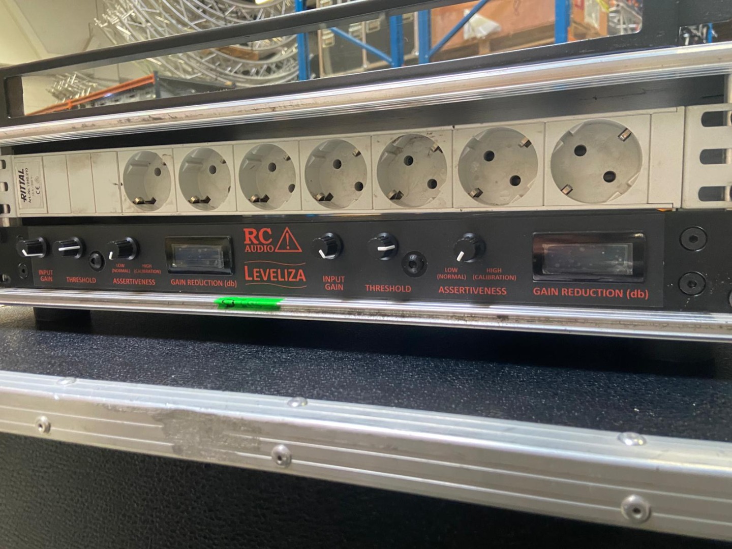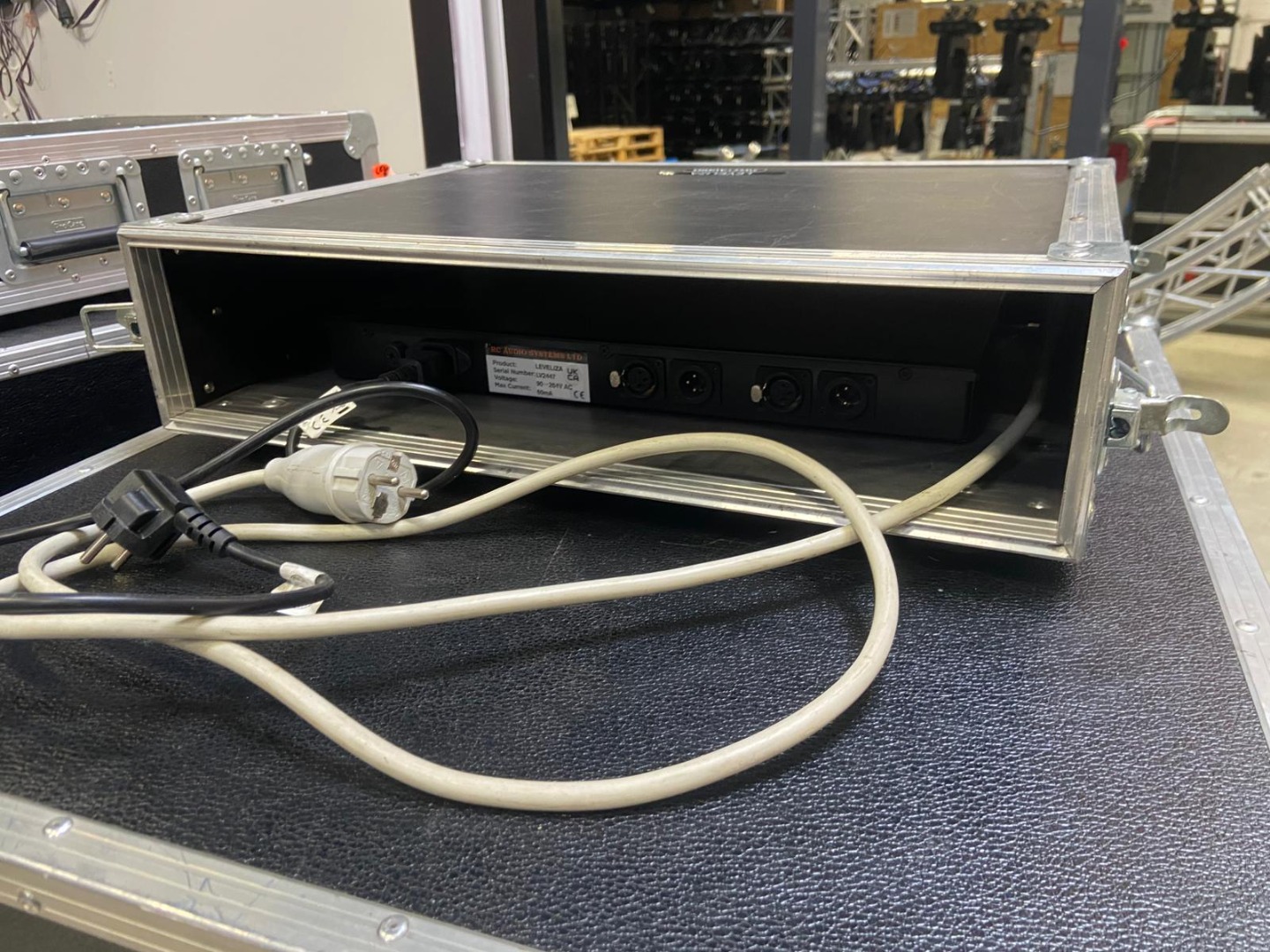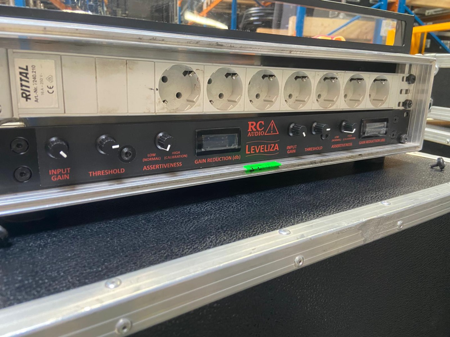 Kaum benutzer RC Audio Leveliza mit Case, Durchsicht-Blende und Schuko-Steckerleiste.