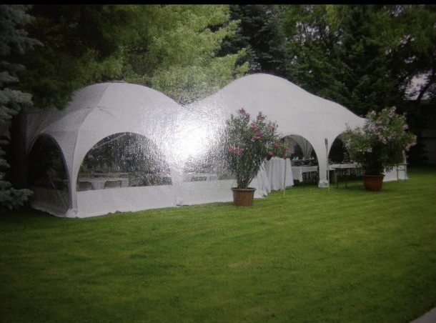 Ich verkaufe wunderschöne, kuppelförmige Zelte, die nur einmal benutzt wurden. Sie sind sehr einfach aufzubauen und praktisch zu transportieren. Die Stangen bestehen aus Aluminium und die Plane ist außen gummiert, während sie innen eine textile Struktur hat. Sehr robust und wetterfest.