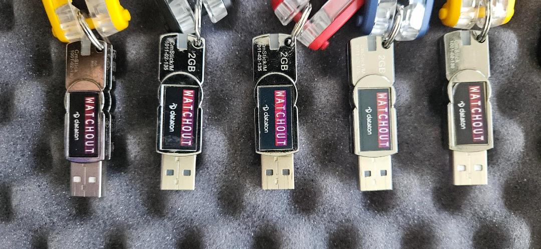 Das Set besteht aus 5 Watchout 6 Lizenz Dongels