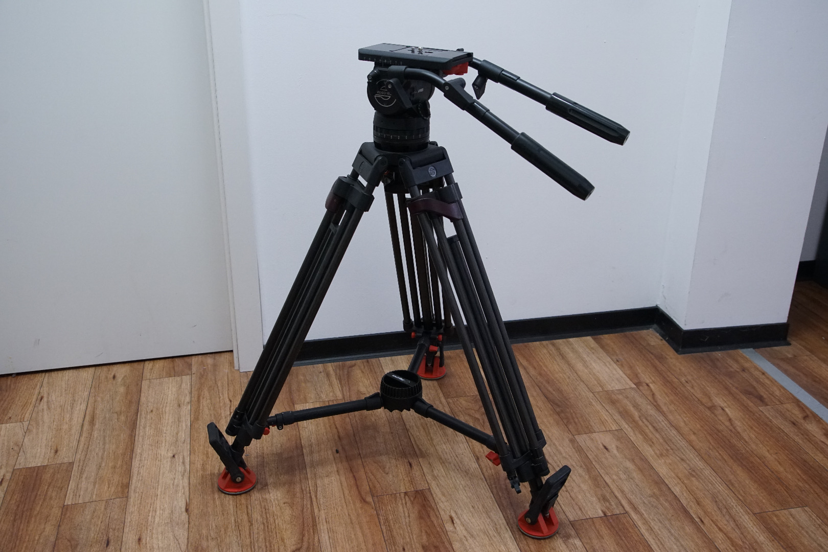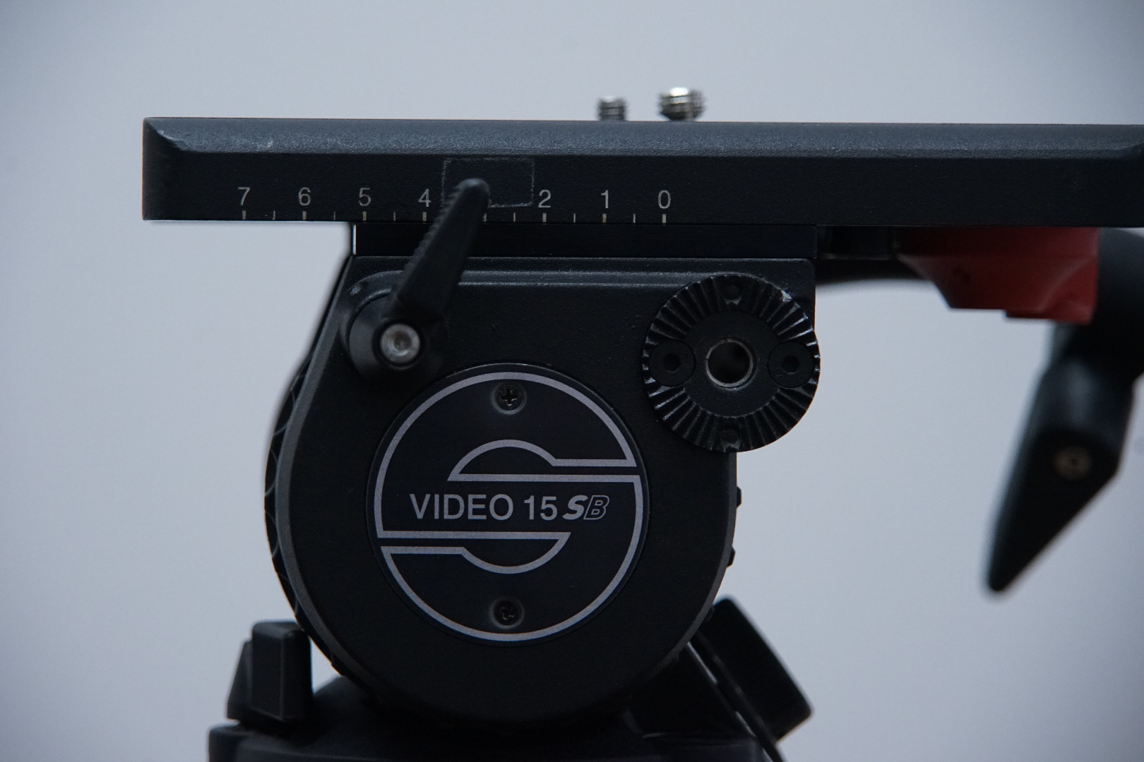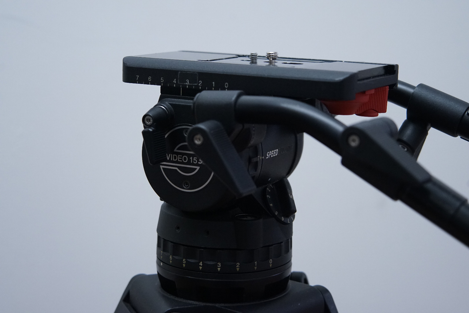 Zum Verkauf steht ein Sachtler Video 15 SB mit zwei Teleskopschwenkarmen, SpeedLock CF Beinen, Mittelspinne, Touch-and-go Platte und Tragetasche.