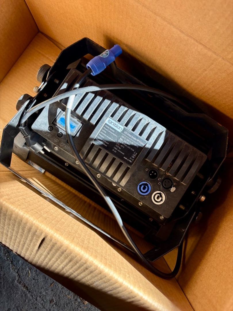 • Anschlüsse: DMX 3‑Pin IN/OUT, Netzanschluss inkl. Kabel