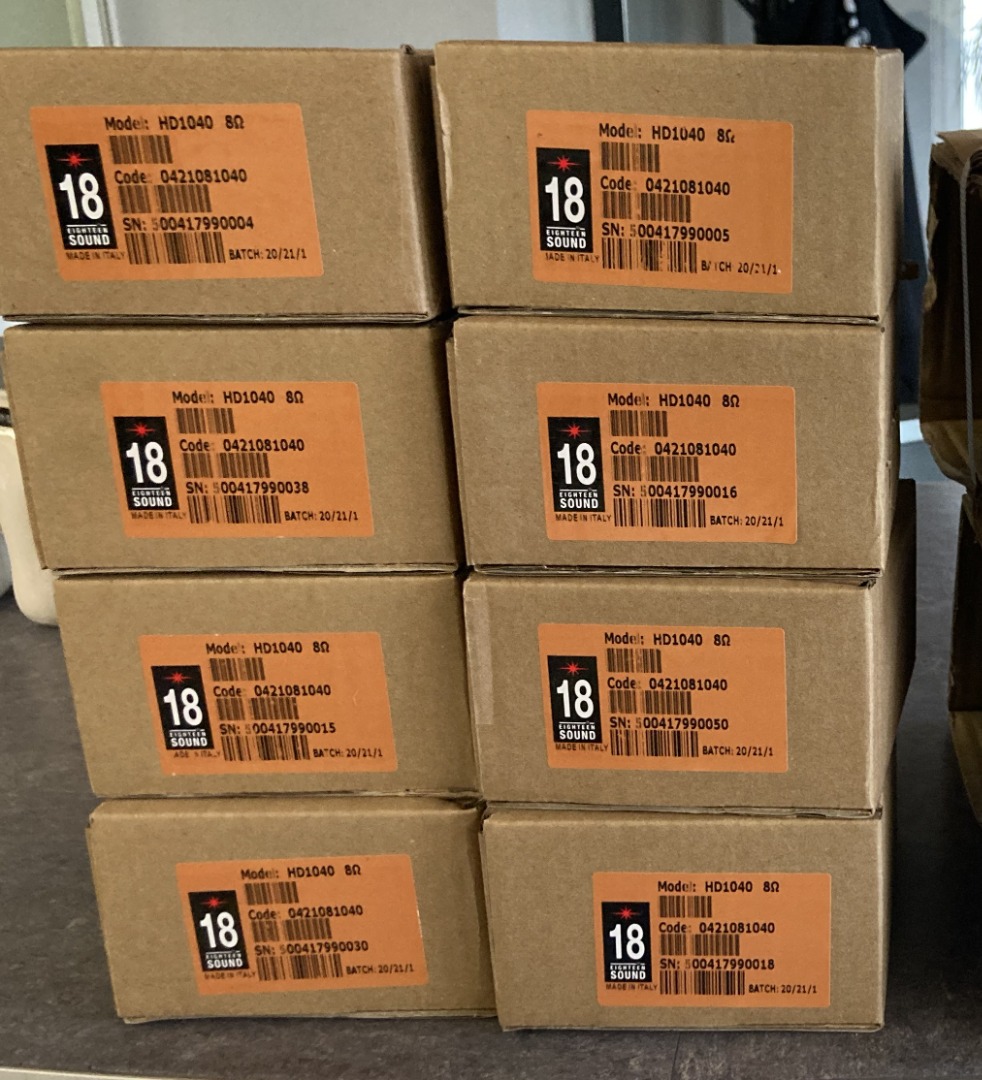 Zum Verkauf stehen insgesamt 8x Eighteensound HD1014 Hochtontreiber, unbenutzt und in OVP. Die Lautsprecher stammen aus einer Firmenauflösung.