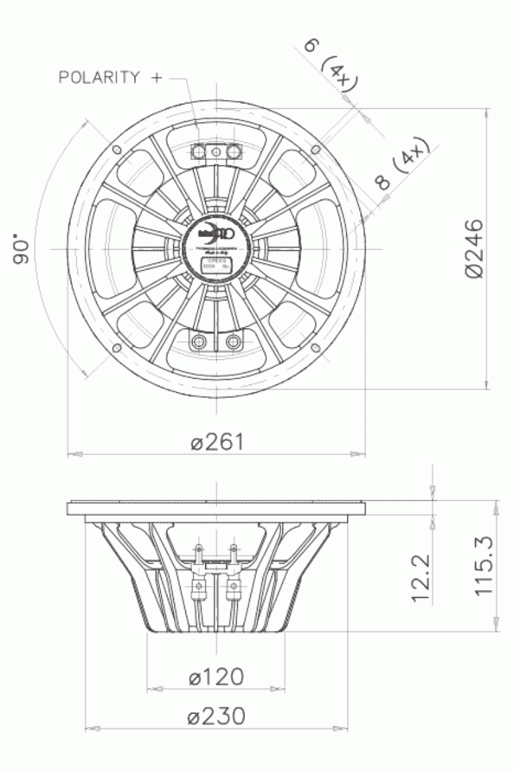 10'' Tiefmitteltöner 10PR300 von Faital mit Papier-Membran, Neodym-Magnetsystem und hinterlüfteter Zentrierspinne - mit Anschlussterminal