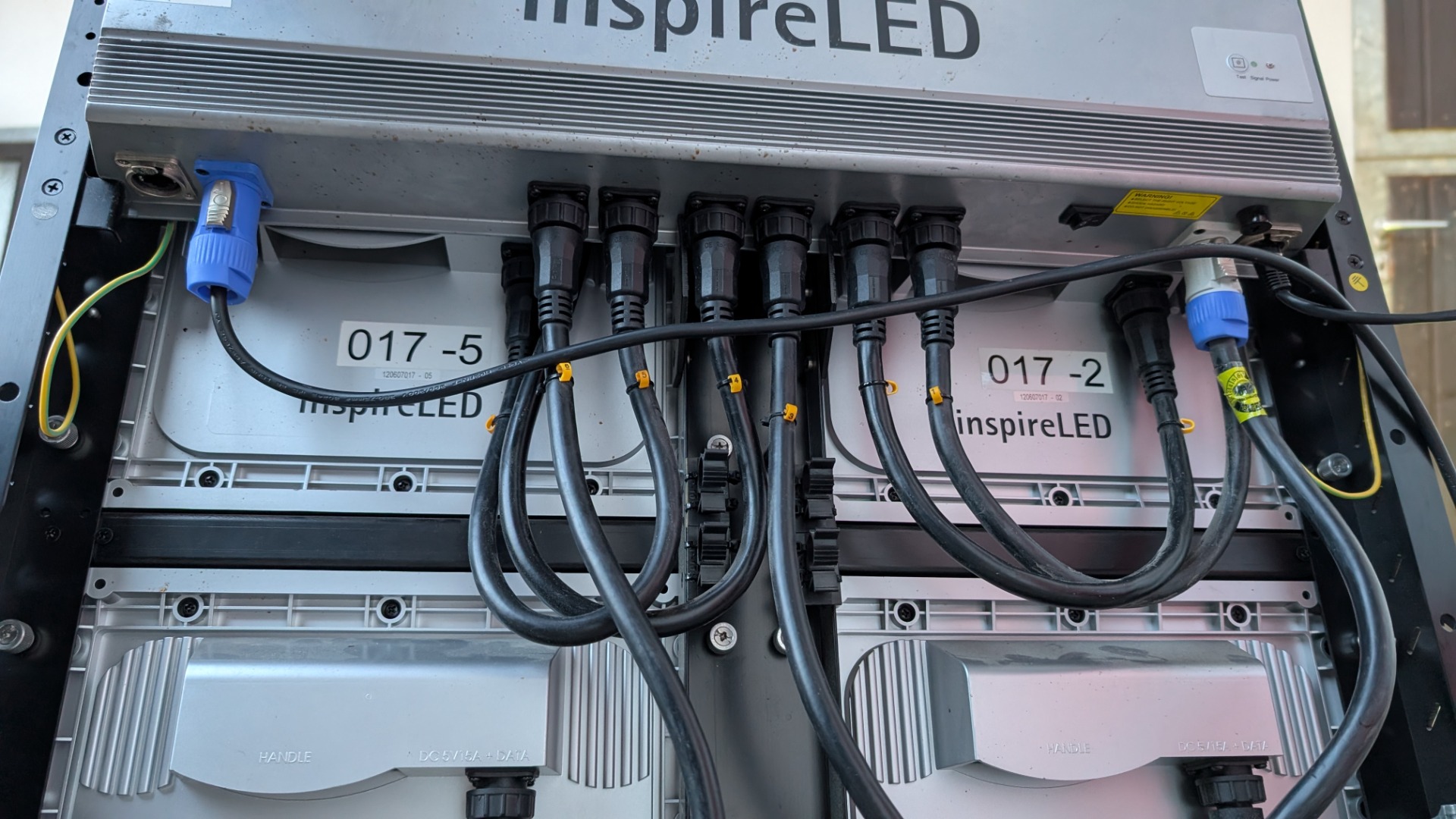 Anschlüsse & Signalverarbeitung: Powercon In and Out inkl. Out Kabel in jedem Panel, sowie Ethercon für die Datenübertragung