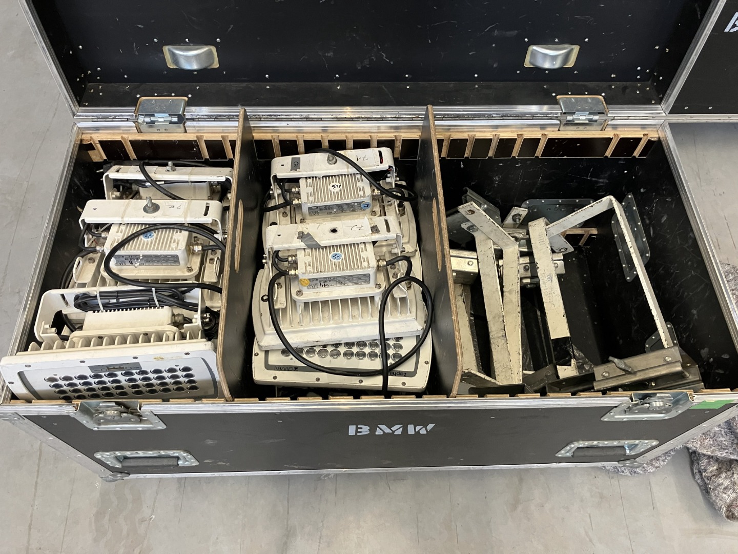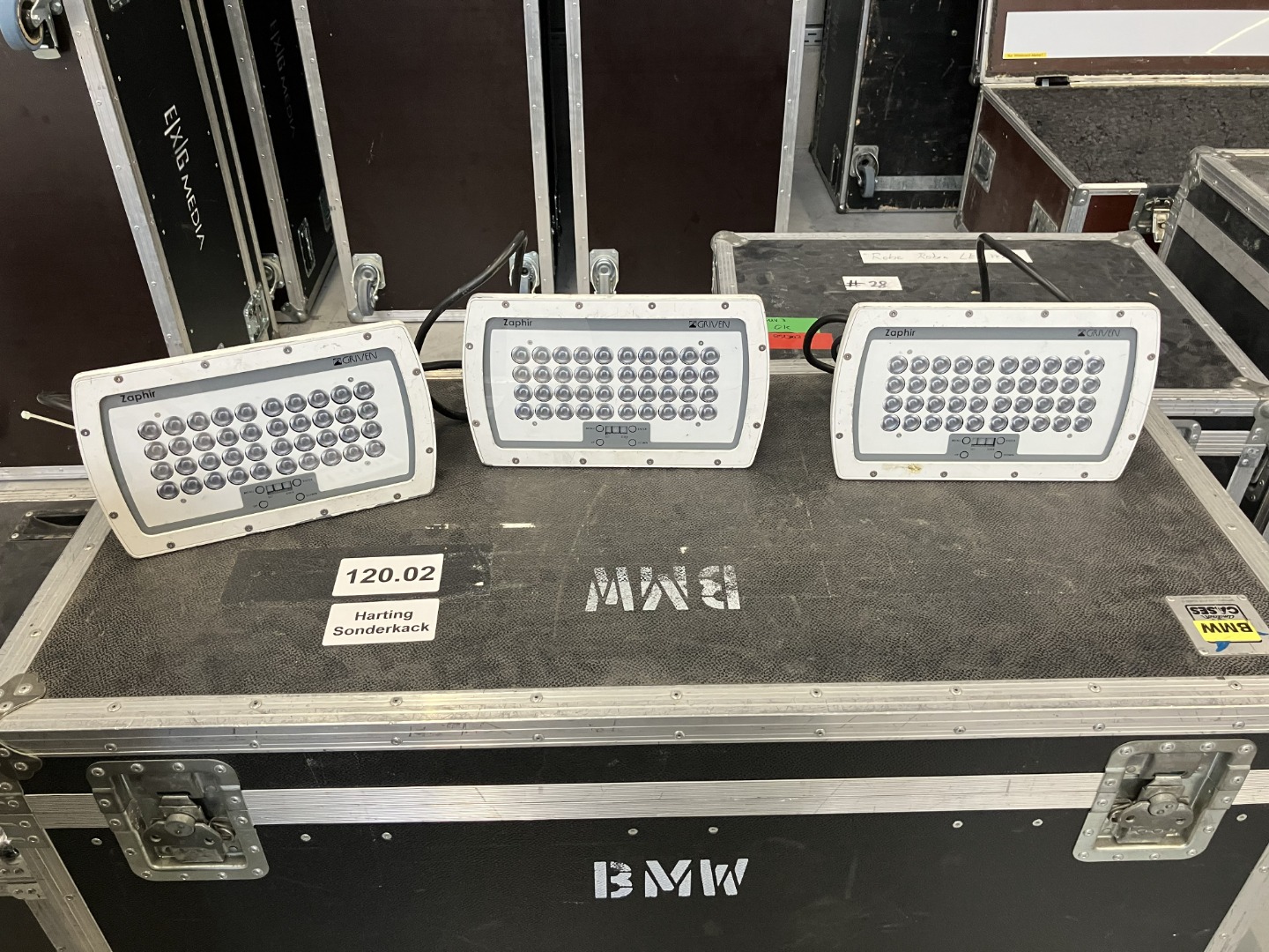 • 10x Safety, 13x Mini TV Zapfen, 7x Manfrottoklemme, 20x DMX Stecker fehlen,