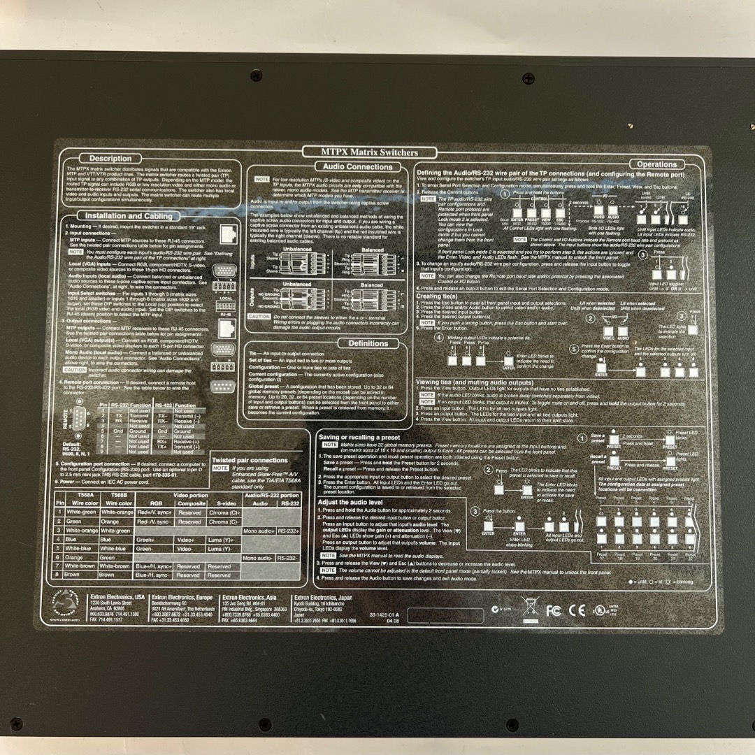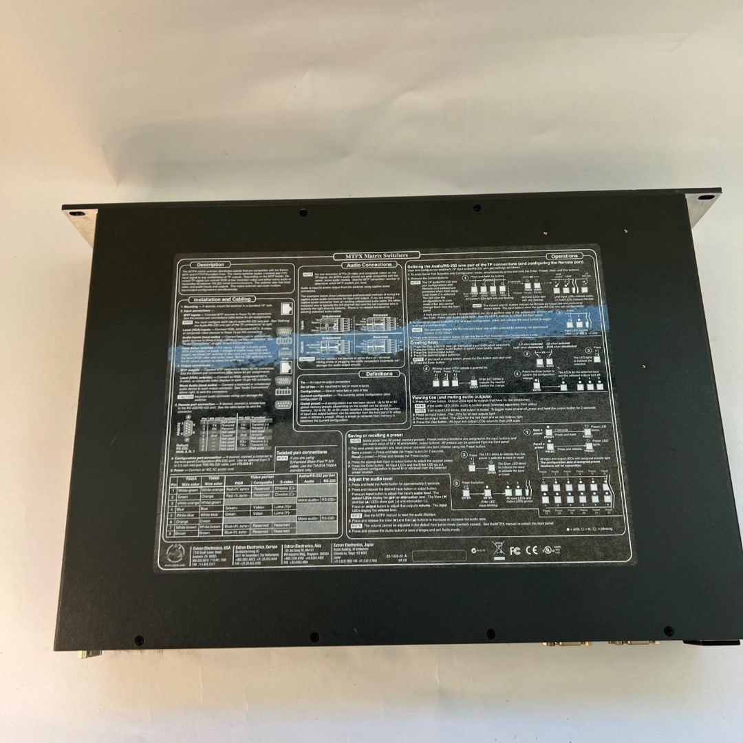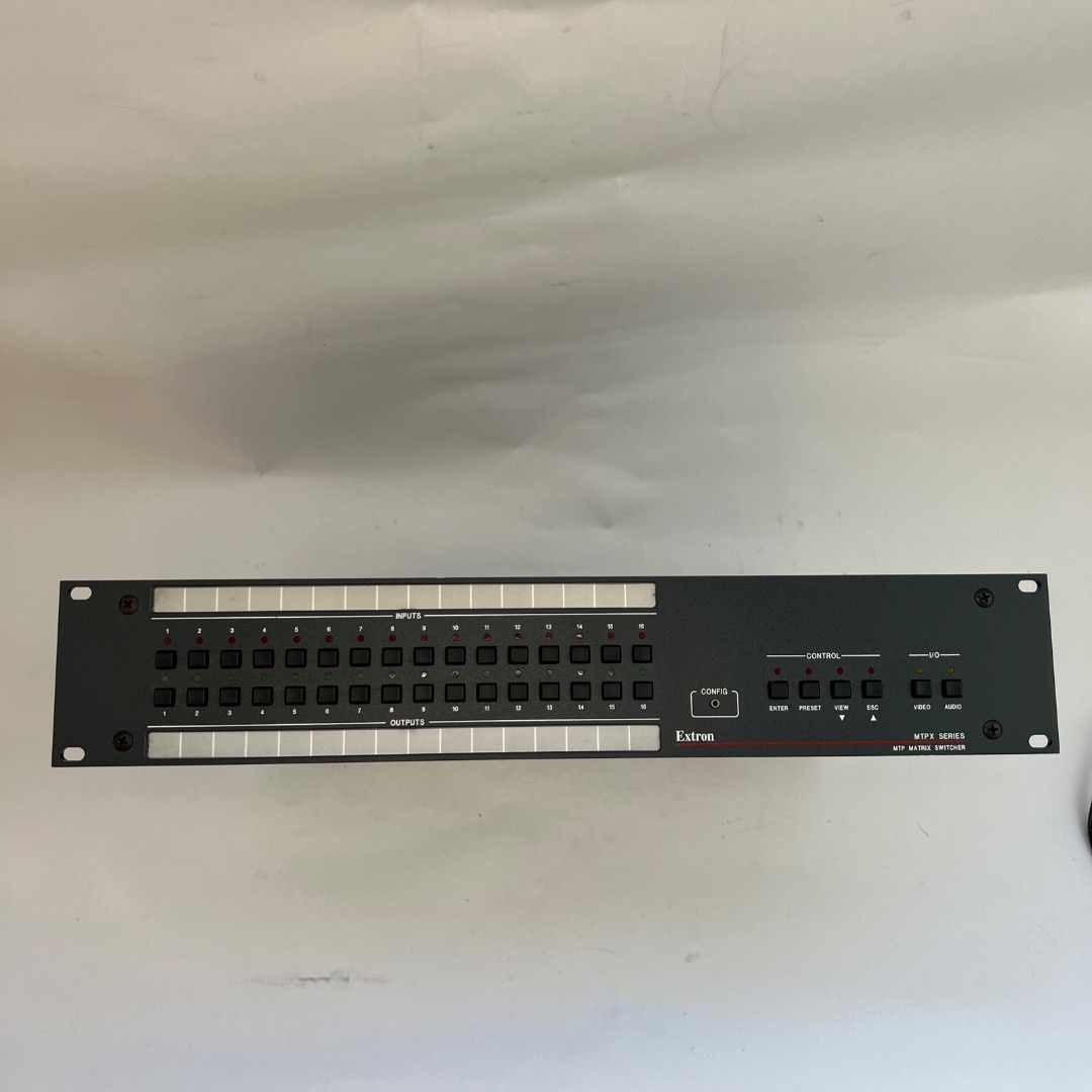 Hello everyone, the Extron MTP 168 matrix switcher is in very good used condition (see pictures). Unfortunately, the original packaging and manufacturer's manual are not included. A power cable is included. You can find more information on the manufacturer's website.