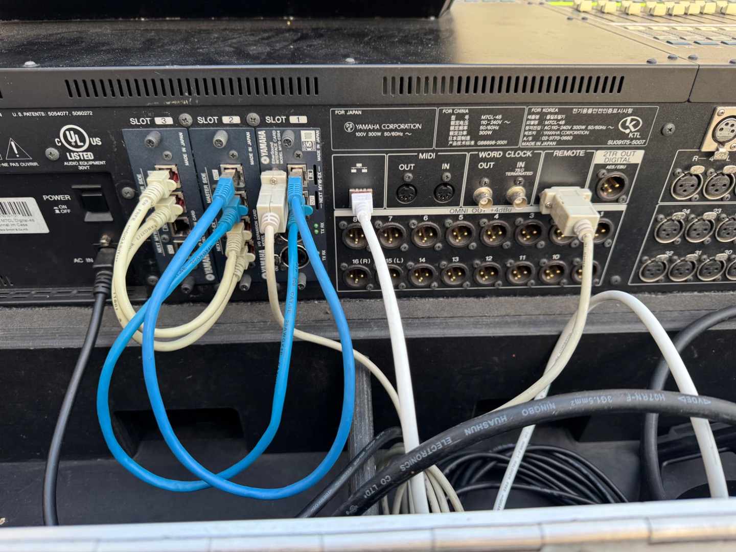 wir verkaufen unsere Yamaha M7CL im Amptown Case inkl. 1x Yamaha MY16-ES64 Interface Card, 2x Yamaha MY16-EX Erweiterungskarten sowie 3x Yamaha SB168-ES Stageboxen.