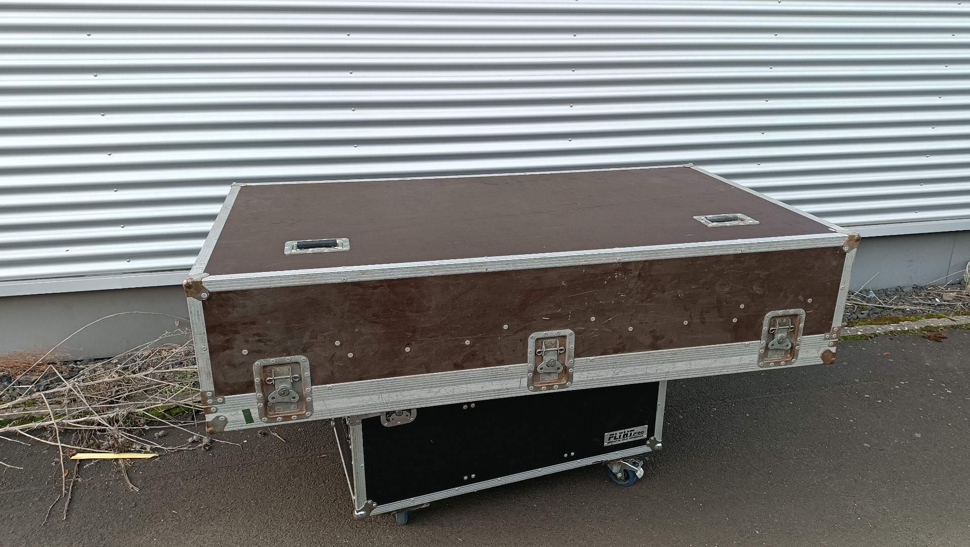 Mit dazu gibt es das Case aus unserer eigenen Casewerkstatt, zwei Kaltgerätekabel, zwei Pultleuchten und die originale Abdeckung.
