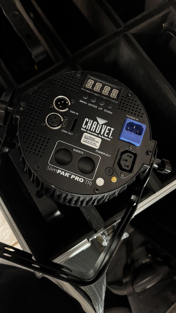 3x schwarze CauvetDJ SlimPAR Pro Tri (nahezu baugleich, lichttechnisch sieht man keinen Unterschied)