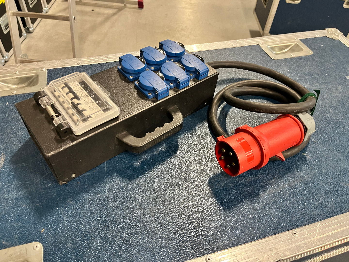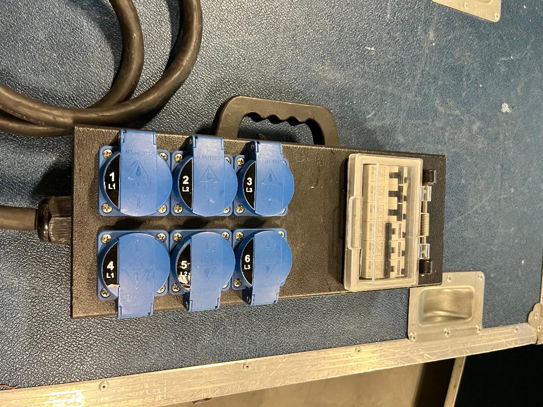 Abgänge: 6x Schuko je mit eigenem RCBO abgesichert (perfekt z.B. für LED-Videowände)