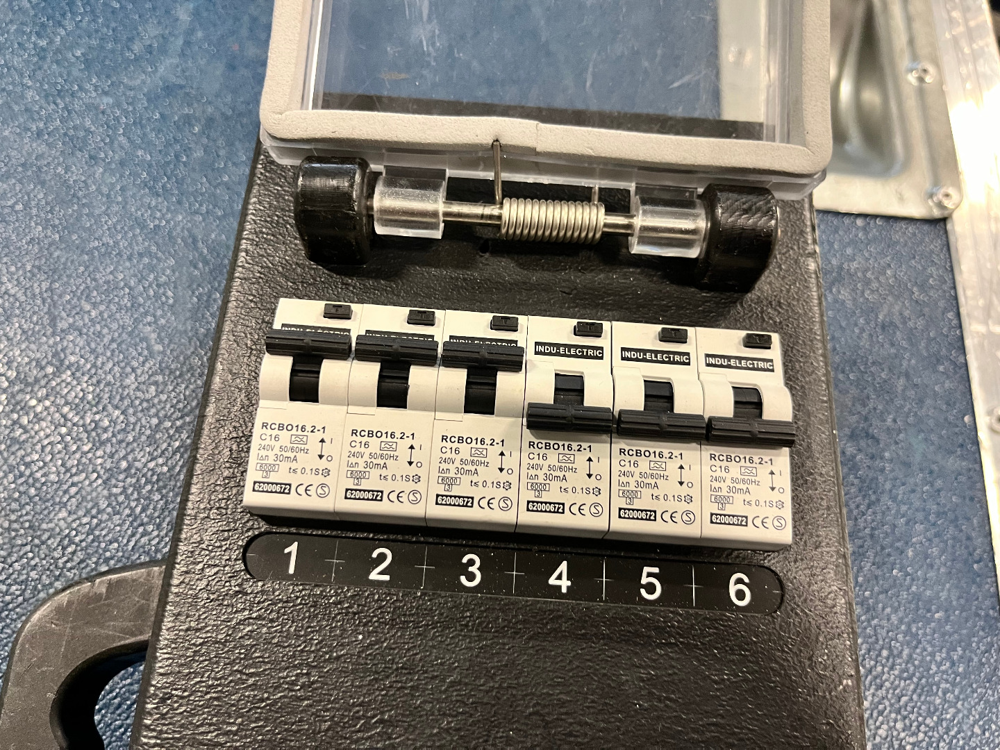 Ausgang: 6 x Schuko mit 6 x RCBO16A/C/30mA/1TE