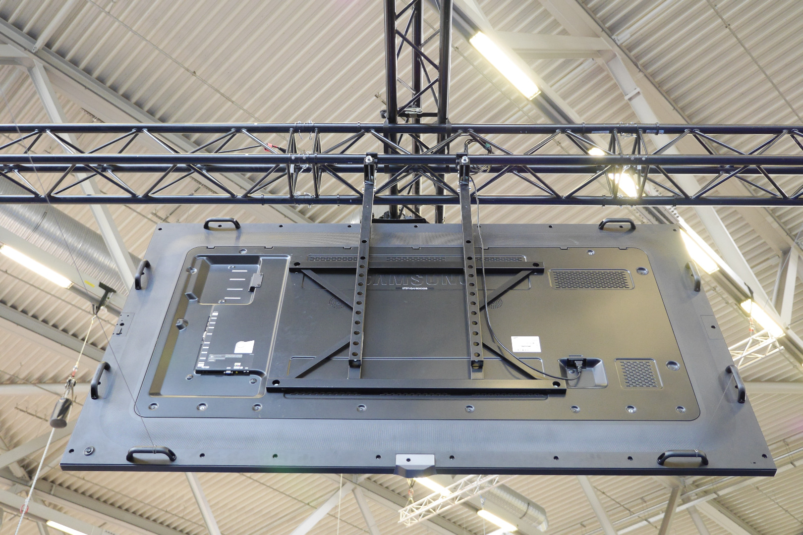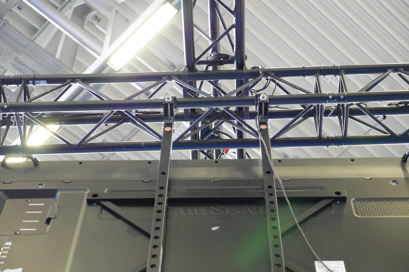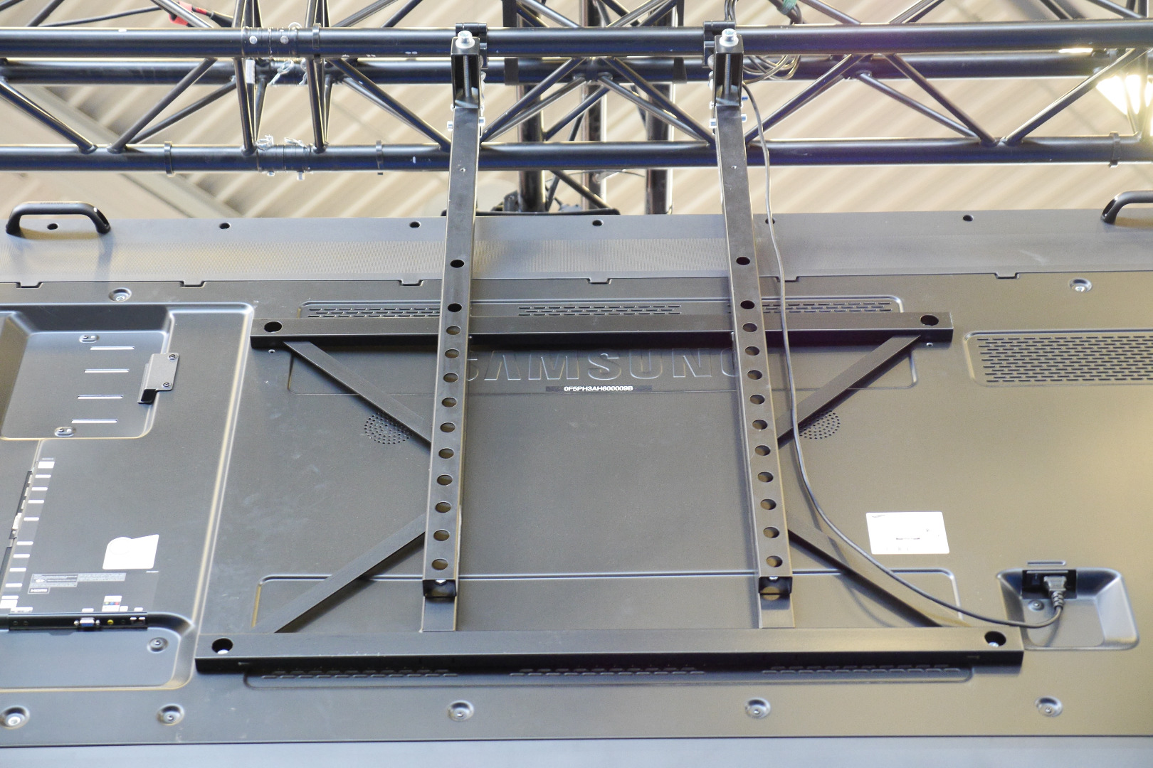 Wurde bereits öfters mit Bildschirmen von etwa 70-95" eingesetzt, passt wahrscheinlich auch für größere (siehe Beispiel-Fotos vom Anwendungsbeispiel mit Samsung 95").