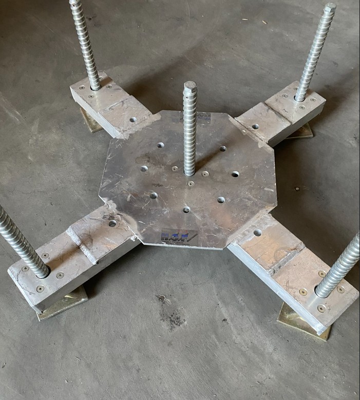 Towerbase mit 5 Gerüstspindeln zur Nivelierung. Passend auf Towertruss und GP-Truss 20,5" geschraubt
