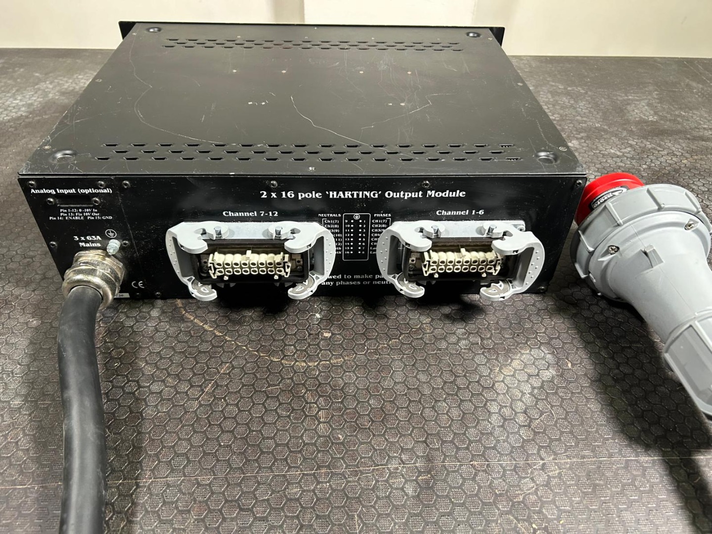 63A Stecker nicht dabei, da das Material aus einer Festinstallation stammt.