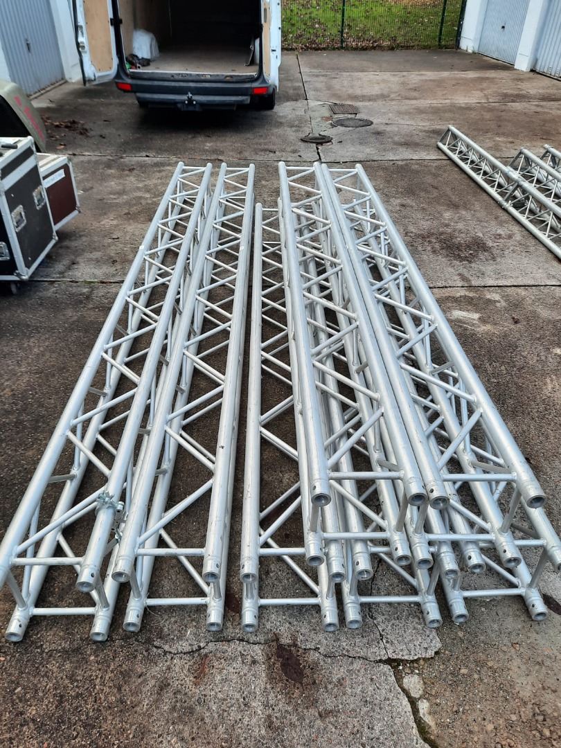 Verkaufe ein Set aus insgesamt 7 Stück 4-Punkt Traversen der Marke ExpoTruss in silber (Alu natur)