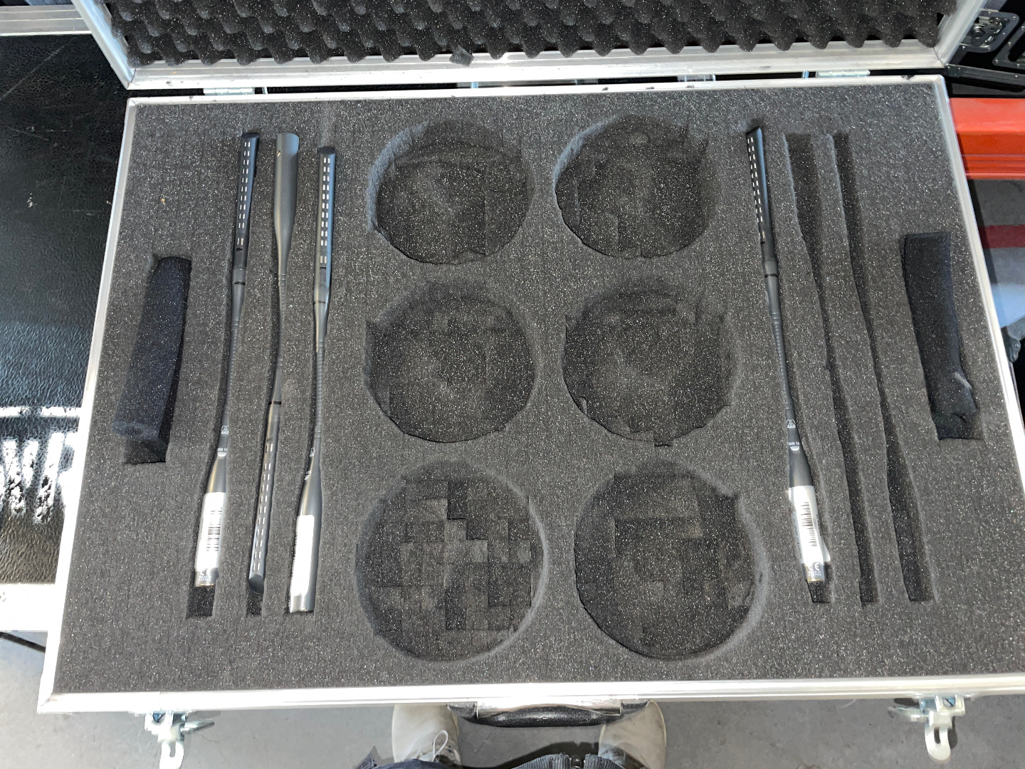 Das Set wird mit Koffer und insgesamt 6x Pop-Schutz verkauft. Tischsprechstellen sind nicht im Set enthalten.
