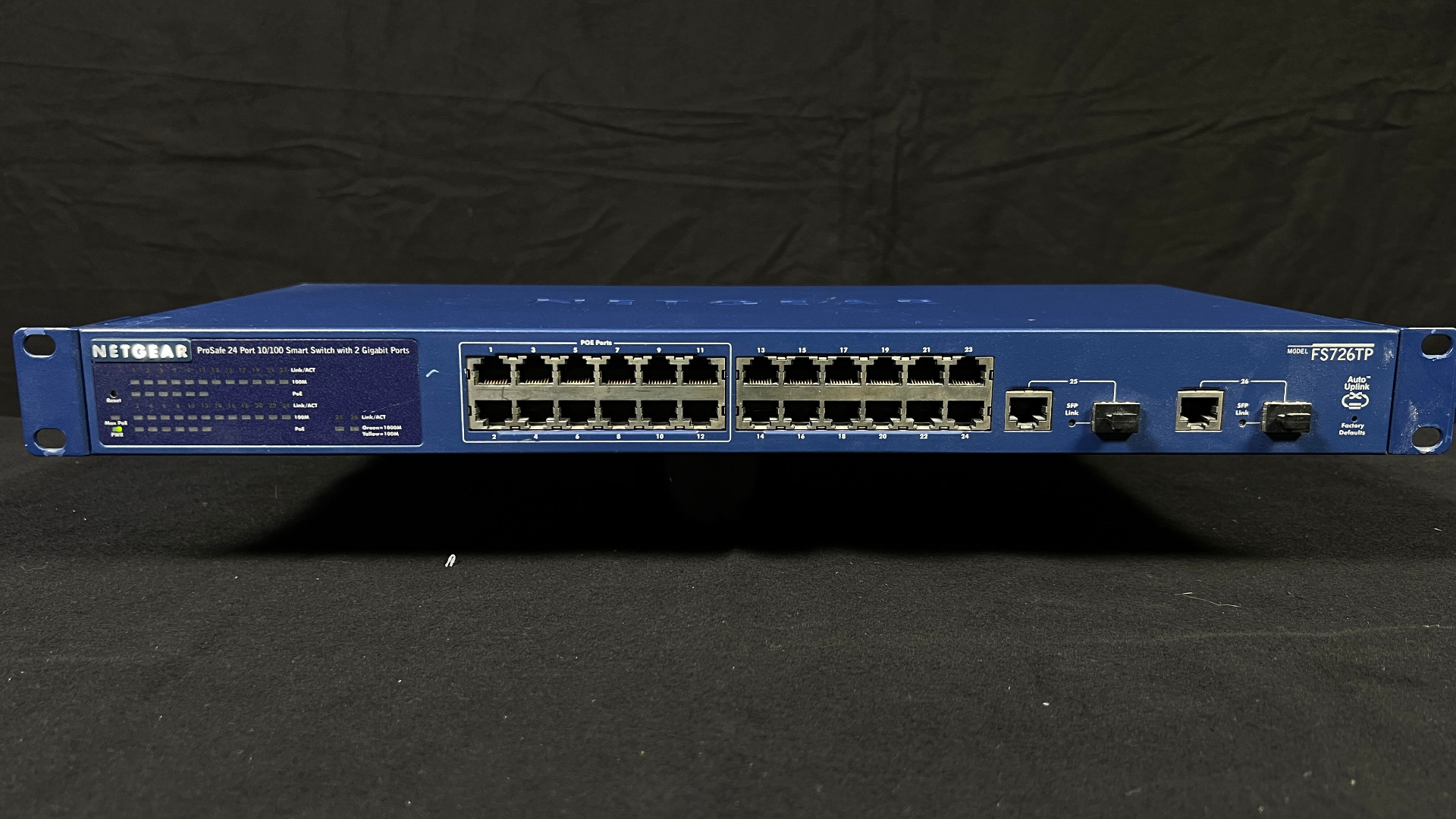 Zum Verkauf steht ein Netgear ProSafe 24 Port 10/100 Smart Switch with 2 Gigabit Ports.