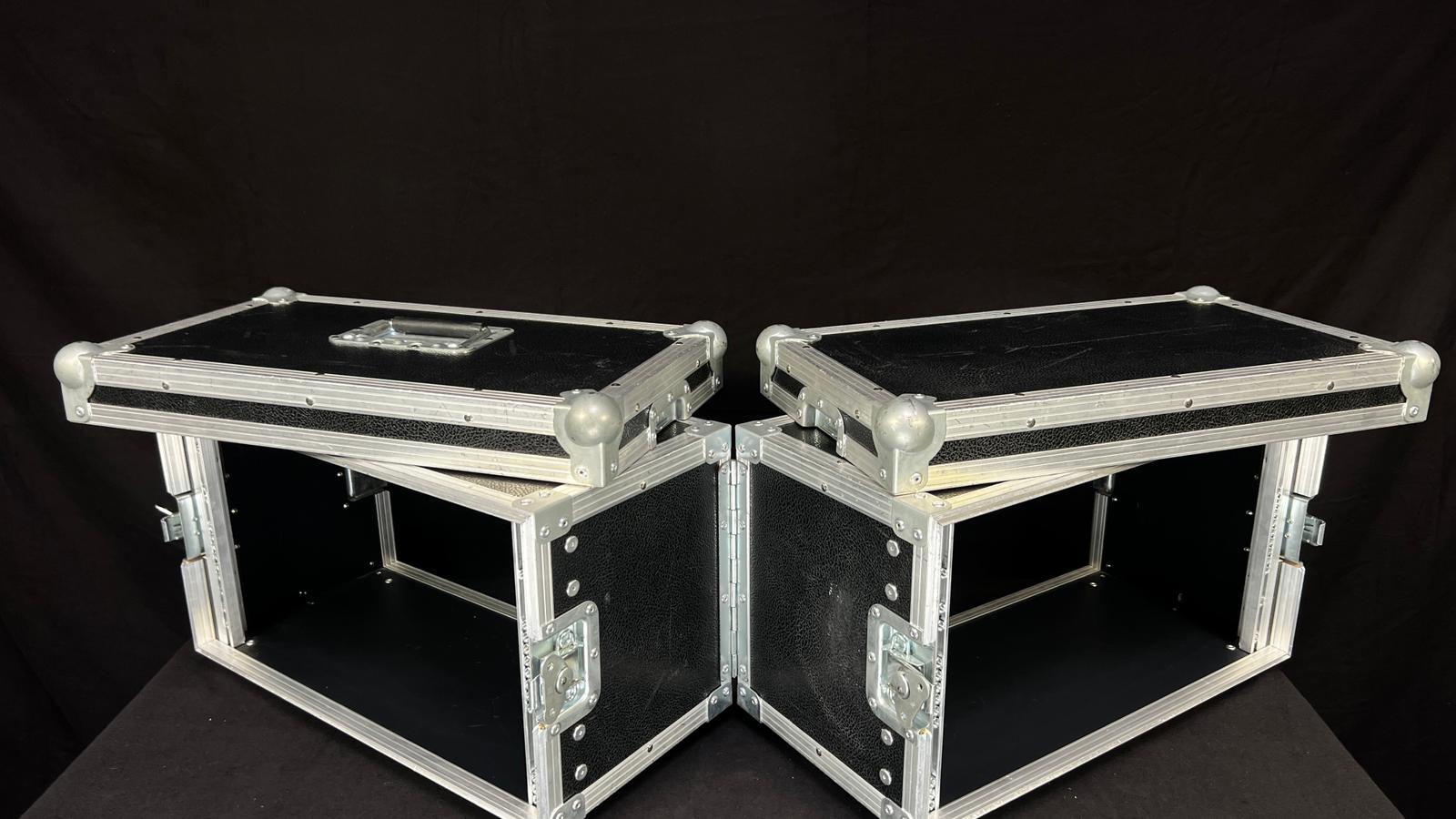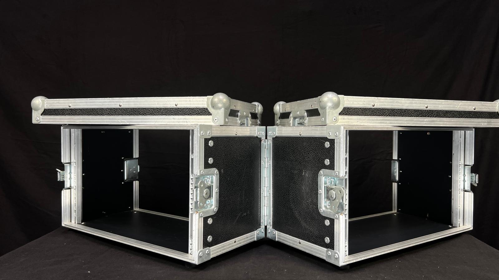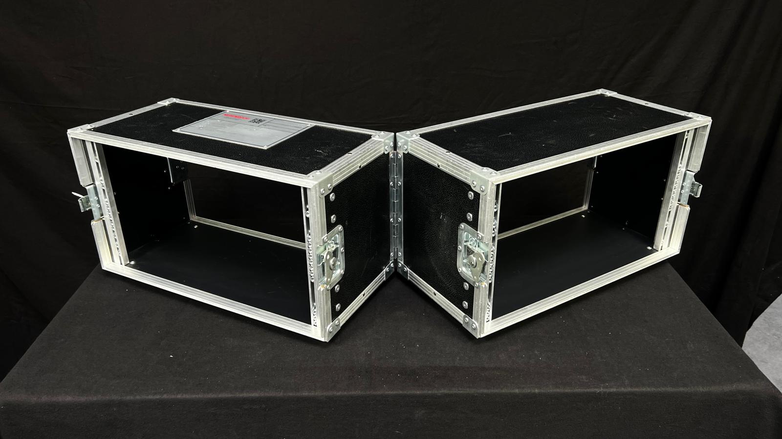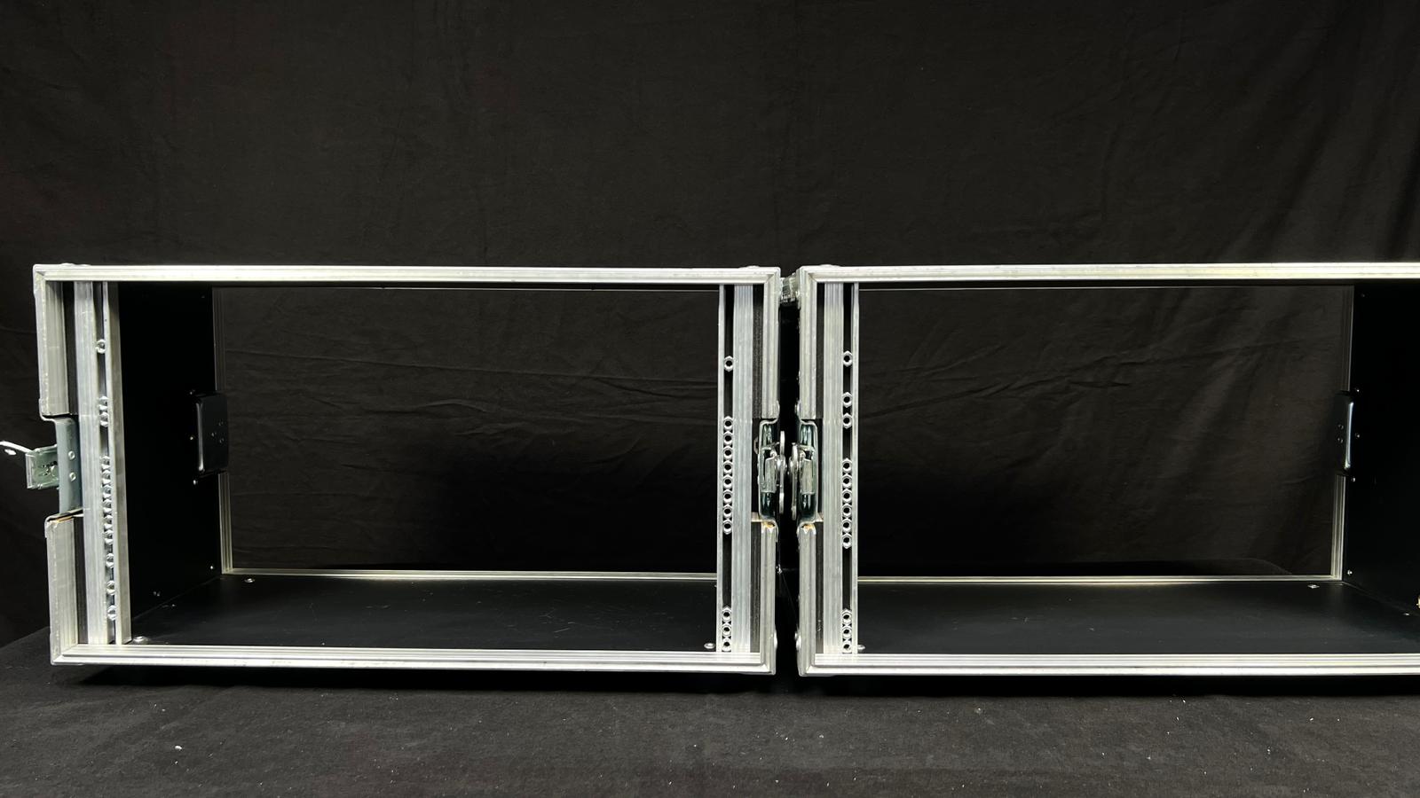 Zum Verkauf steht ein 5HE Vorschaumonitorrack. Dieses Rack ist in der Mitte klappbar. Im geschlossenen Zustand haben die beiden Rackschienen einen Abstand von 48cm.