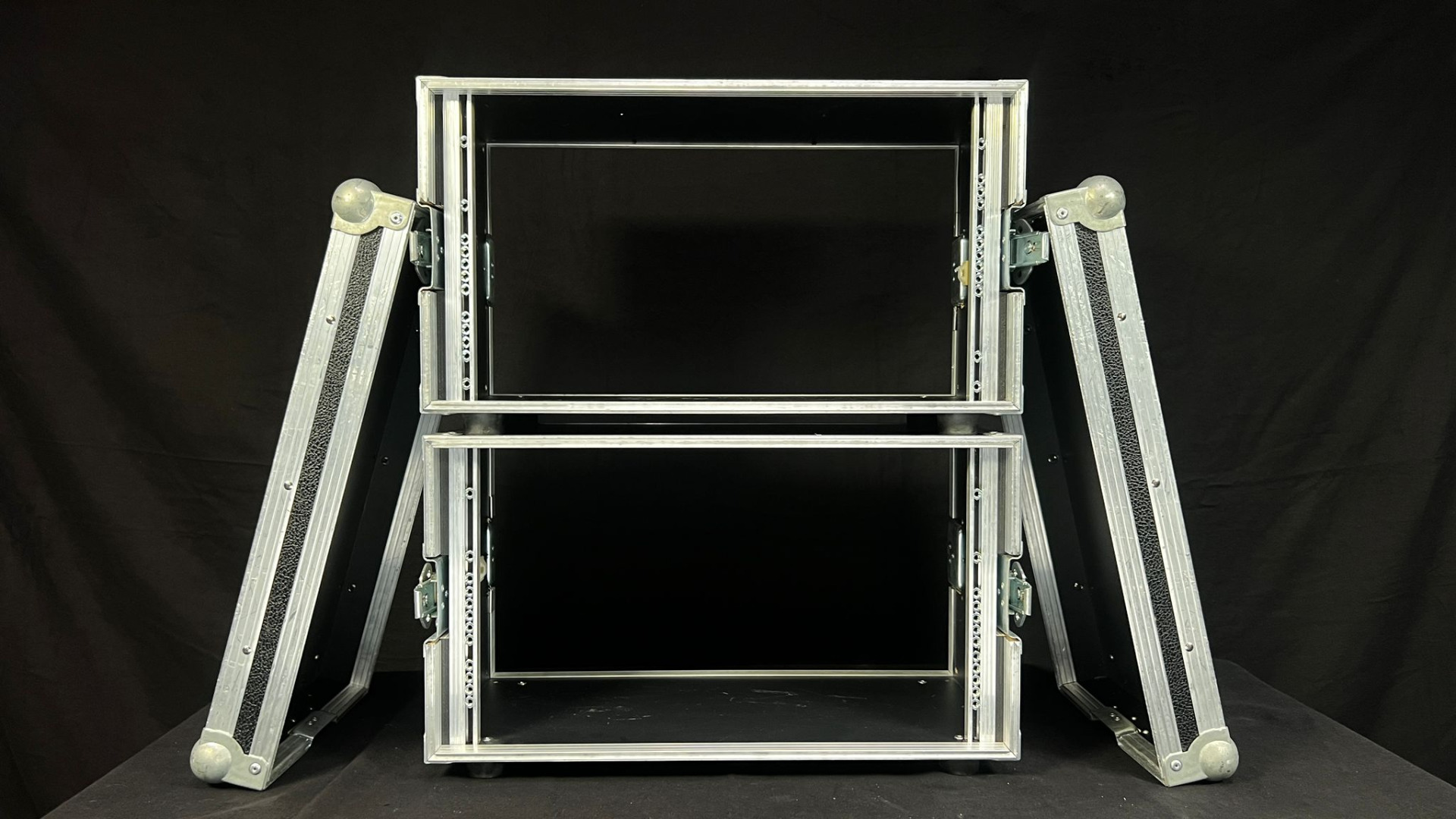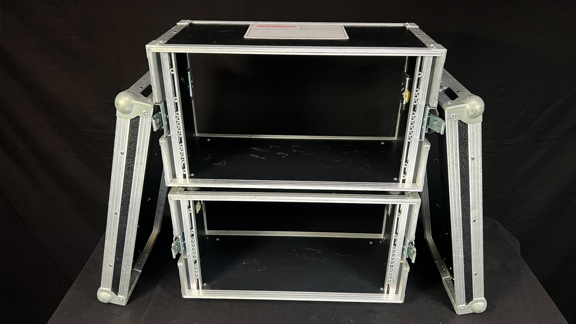 Zum Verkauf steht ein 5HE Vorschaumonitorrack. Dieses Rack ist in der Mitte teilbar. Im geschlossenen Zustand haben die beiden Rackschienen einen Abstand von 48cm.