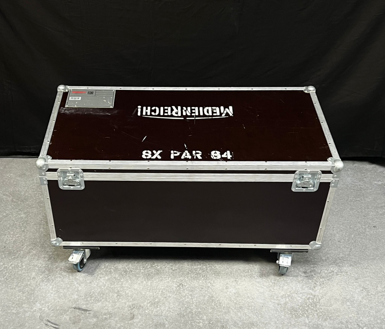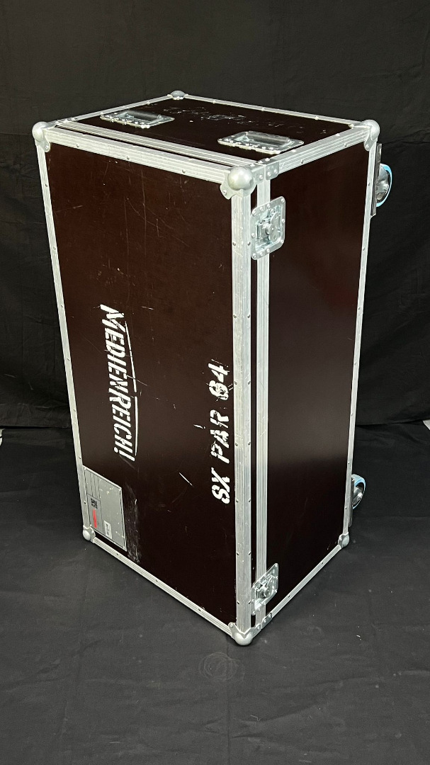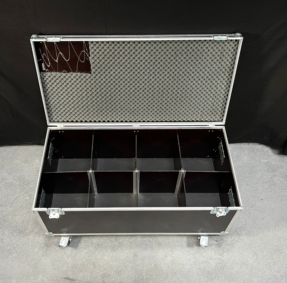 Zum Verkauf stehen 6 Cases. Sie haben ein Außenmaß von H 47cm B 116cm T 60cm. Die Höhe ist ohne die Rollen berechnet.