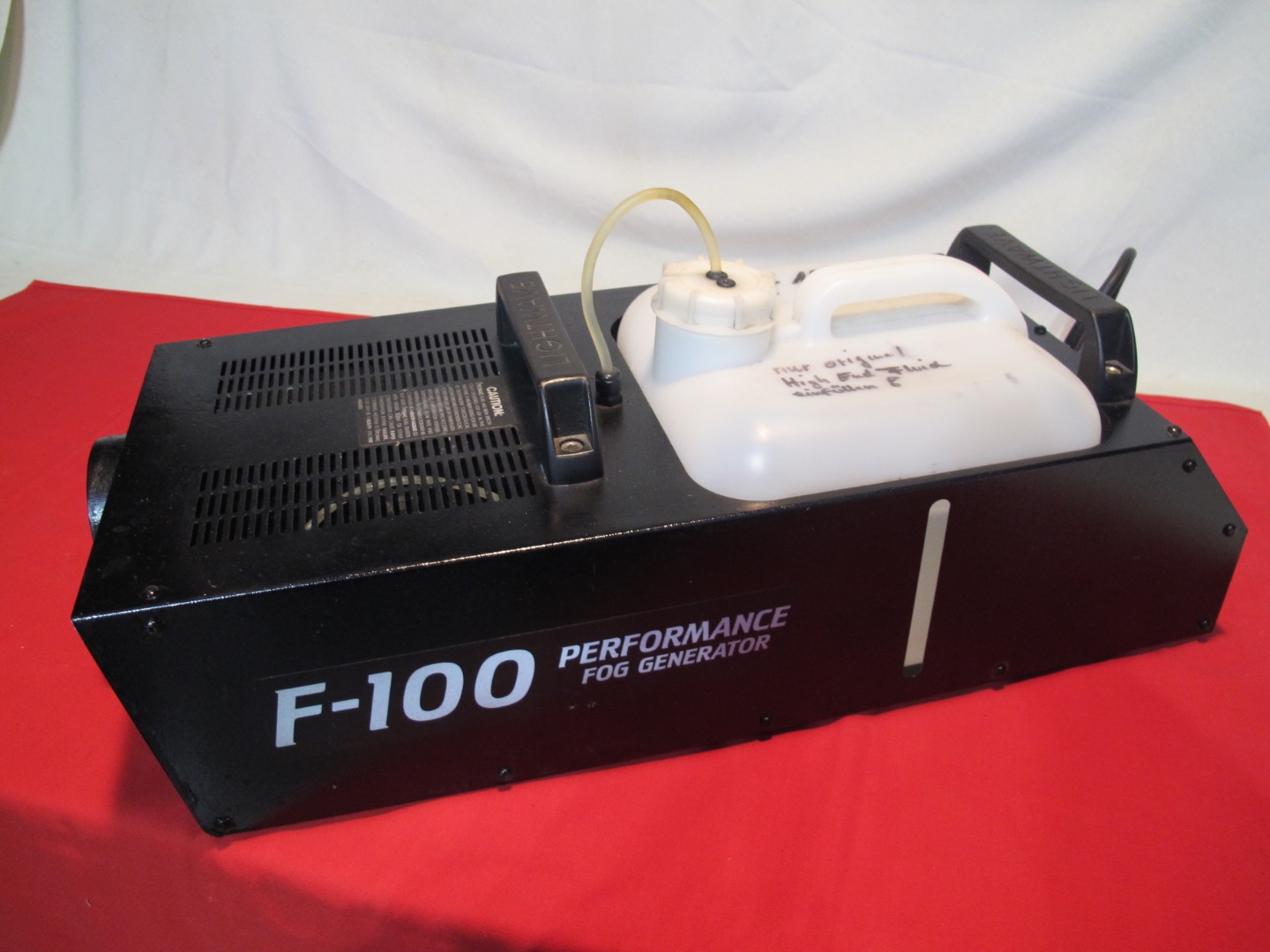 Ich biete eine gebrauchte Performance Fog Generator F-100 Nebelmaschine von High End Systems an. Sie funktioniert zwar, der Nebelausstoß ist aber nicht stark, so wie auf dem Foto zu erkennen ist. Ein original Tank-Kanister ist mit dabei,