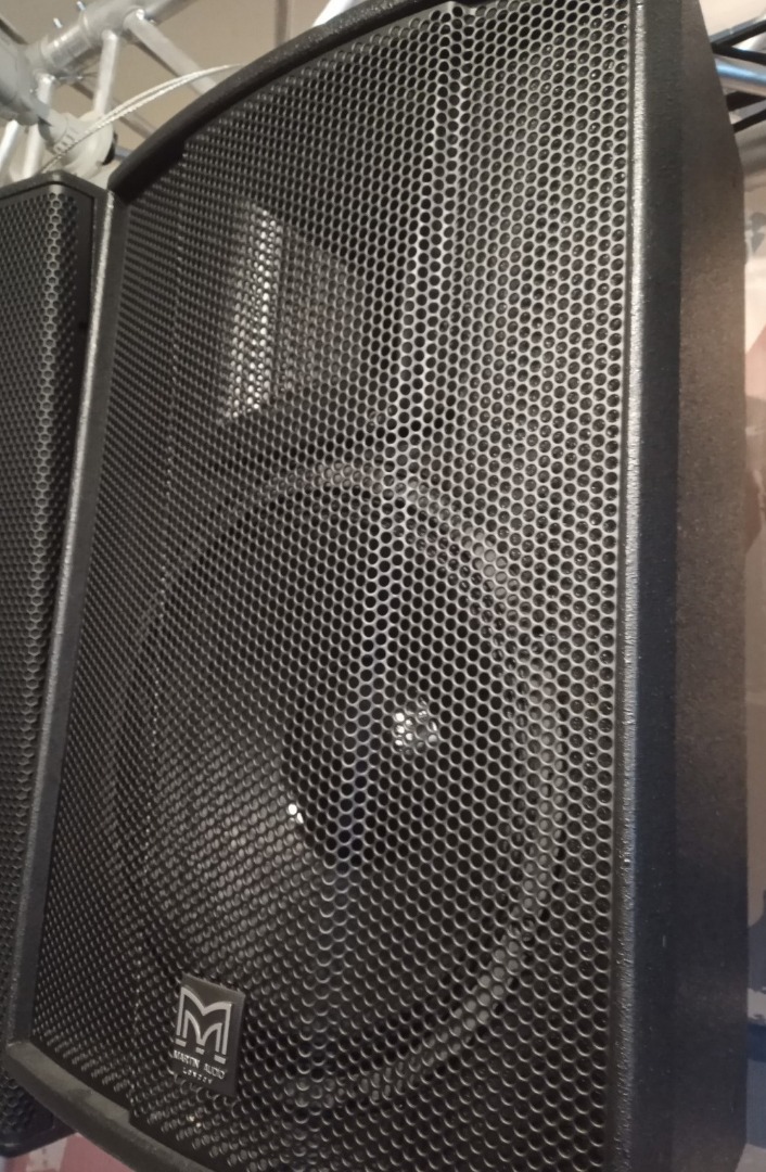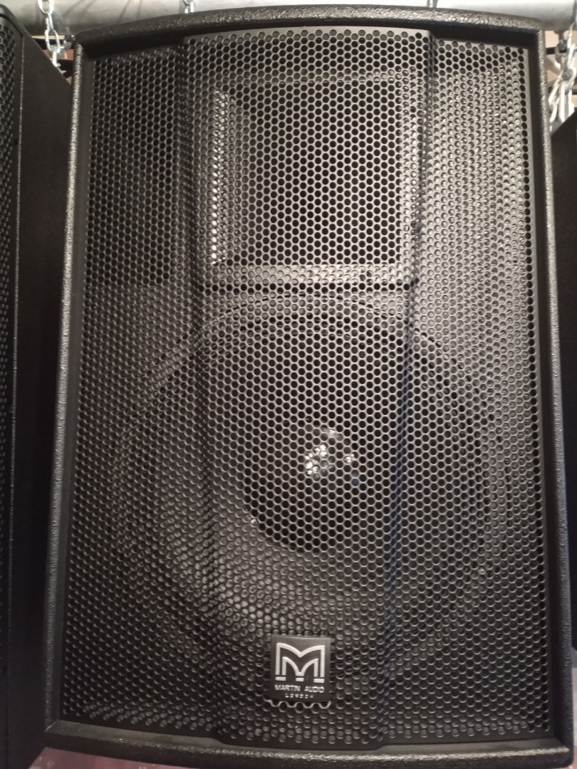 The loudspeaker system shall be of the two-way passive type consisting of one 12" (300mm)/2.5” (63.5mm) voice coil direct radiating reflex loaded low frequency transducer and one 1" (25mm) exit HF compression driver mounted on a user rotatable constant directivity horn in a multi-angled enclosure. The enclosure shall be of a multi-laminate birch ply construction with integral pole mount and threaded inserts for wall and ceiling mounting. Low and high frequency sections shall be integrated by an internal 2.2kHz passive crossover network