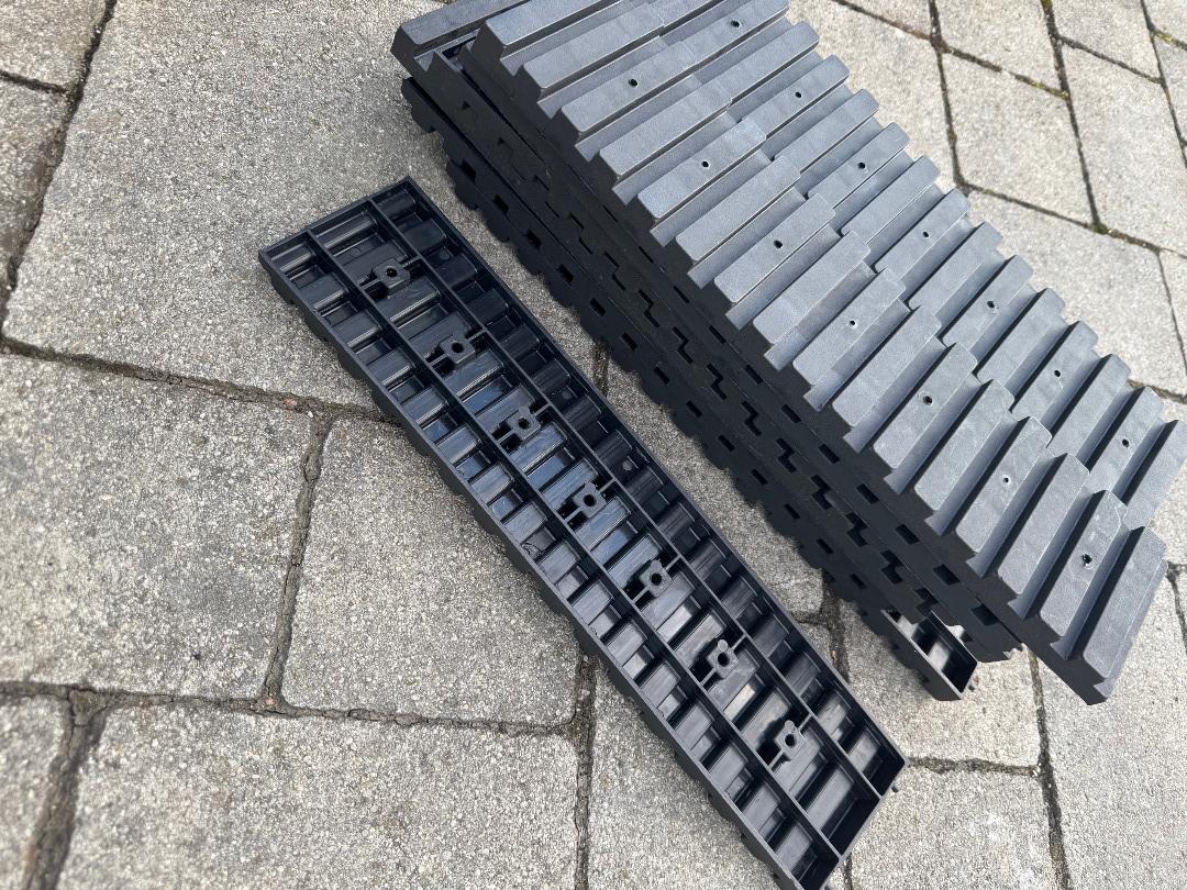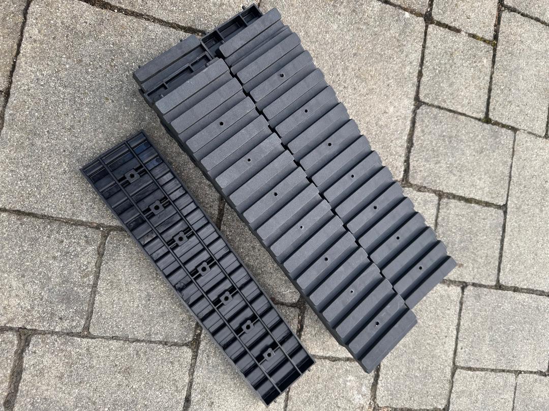 Universelle Rasterleiste für Trennwände aus schlagzähem schwarzem Kunststoff (PA6). Kann mit den integrierten Verbindern (eine Seite Zapfen, andere Seite Bohrung) zusammengesteckt werden oder an einer Säge gekürzt werden.