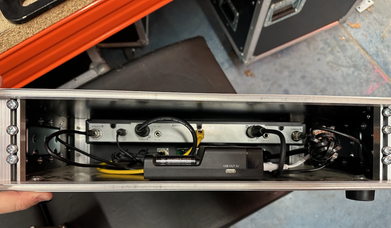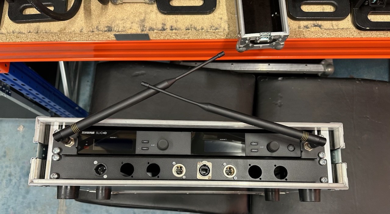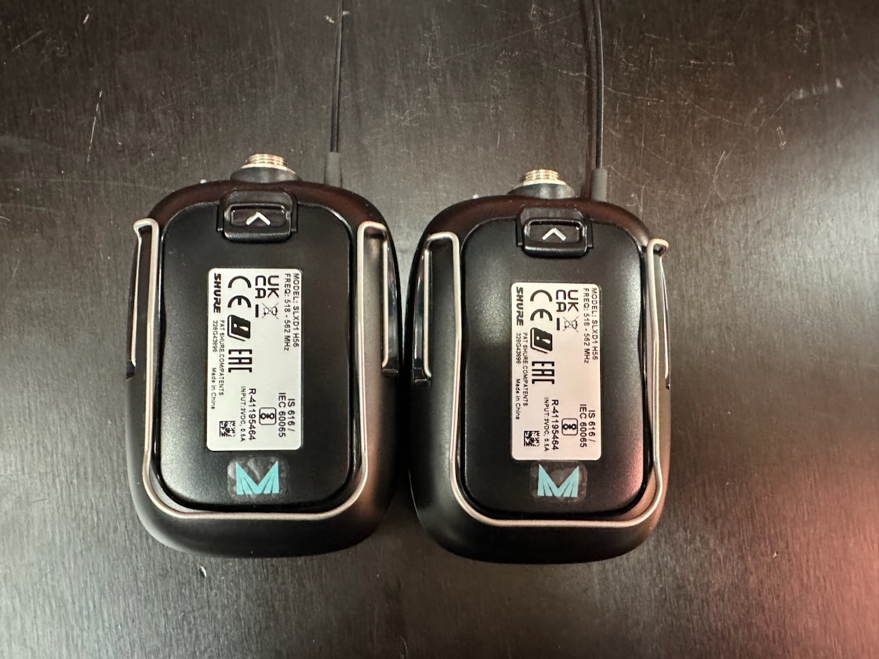 Zum Verkauf kommt eine Doppelfunkstrecke mit je einem Handsender und Bodypack (Shure Mini XLR)