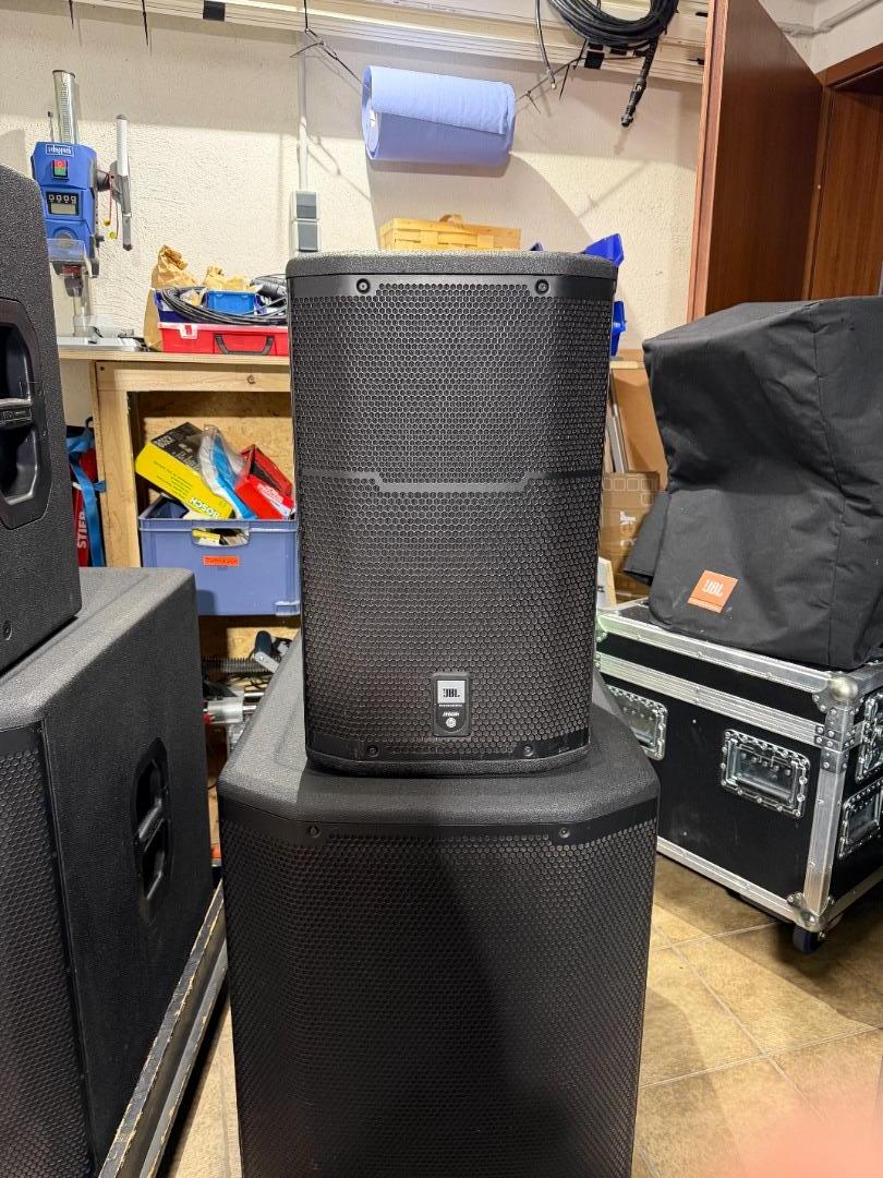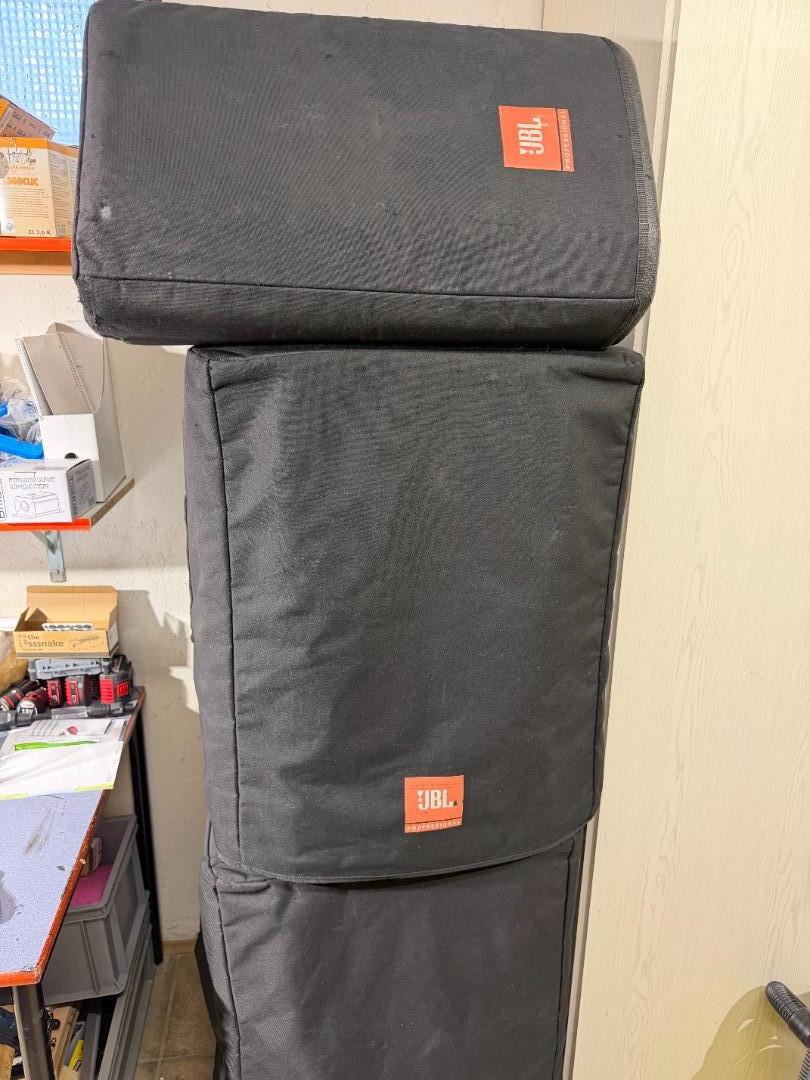 Zubehör: 2 Transportwagen für Bässe, Hüllen für alle Lautsprecher, Anschlusskabel (2 x 1,5m, 2 x 3m)