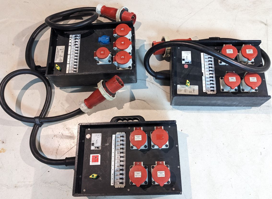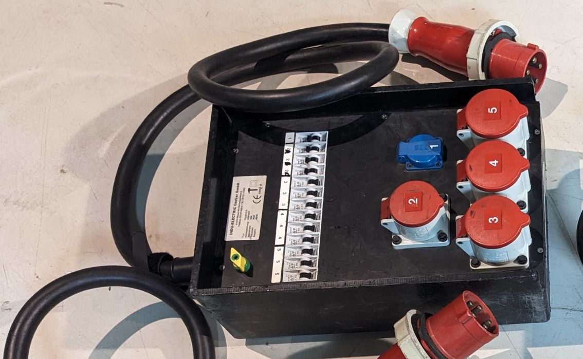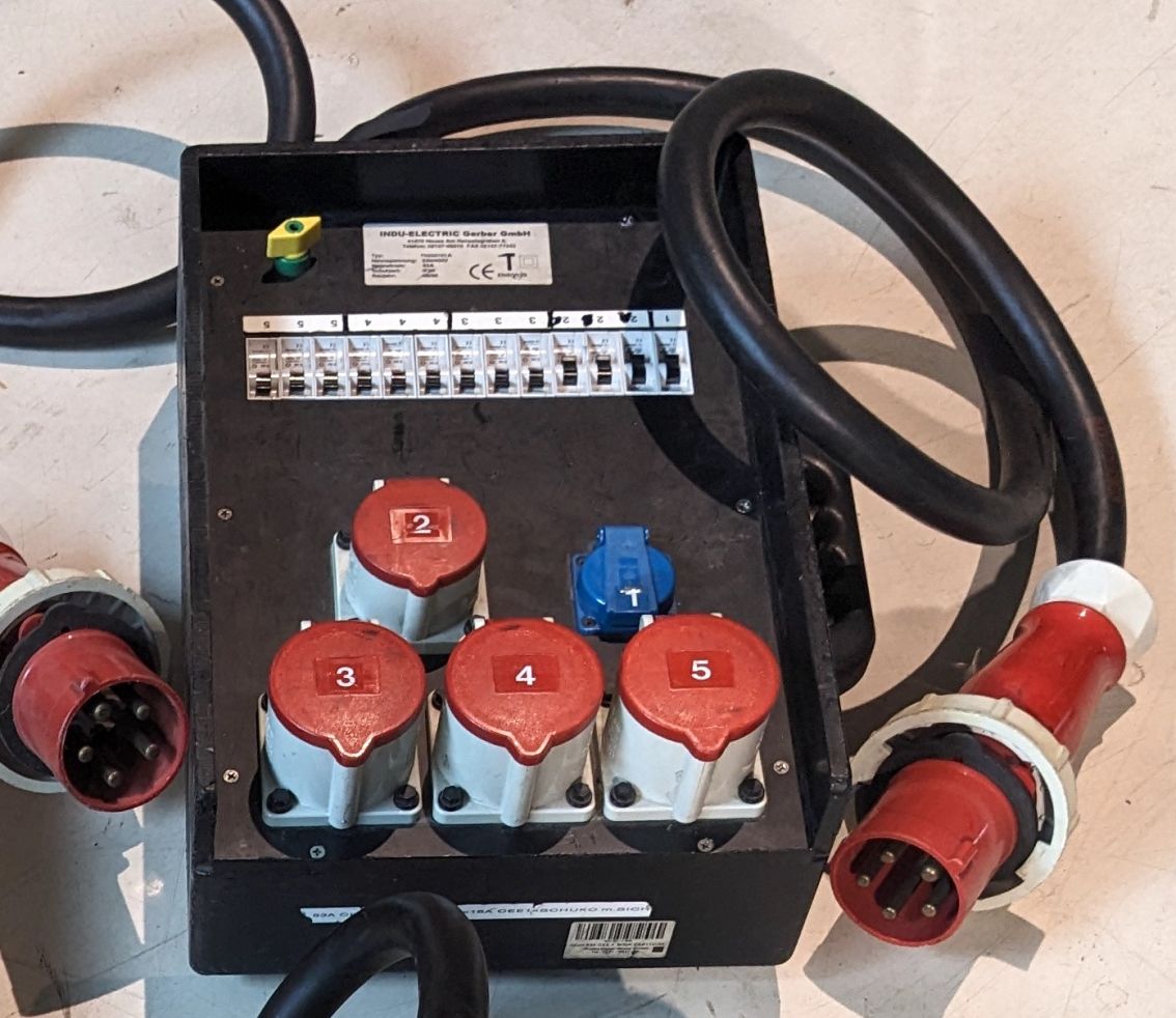 Kofferverteiler 63A aus Gebrauchtwarenbestand. Schlagzähes Material, IP 20.