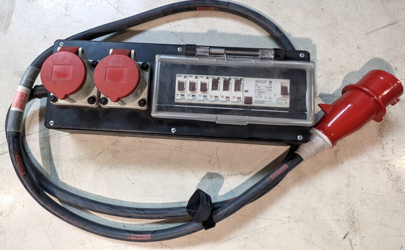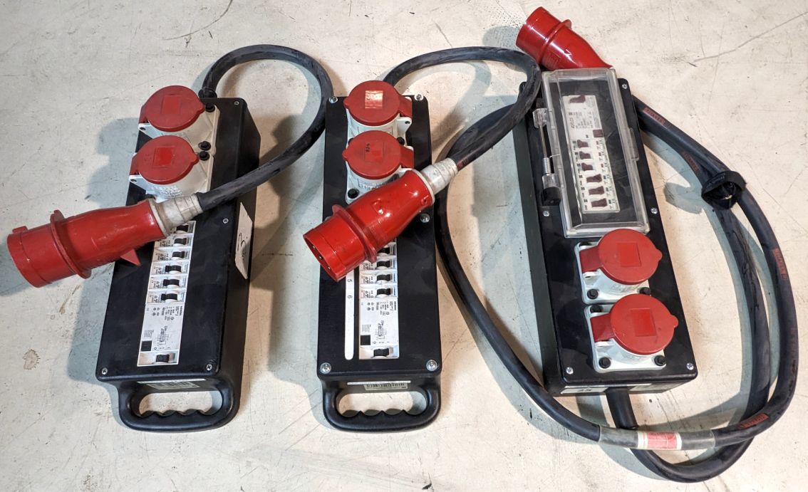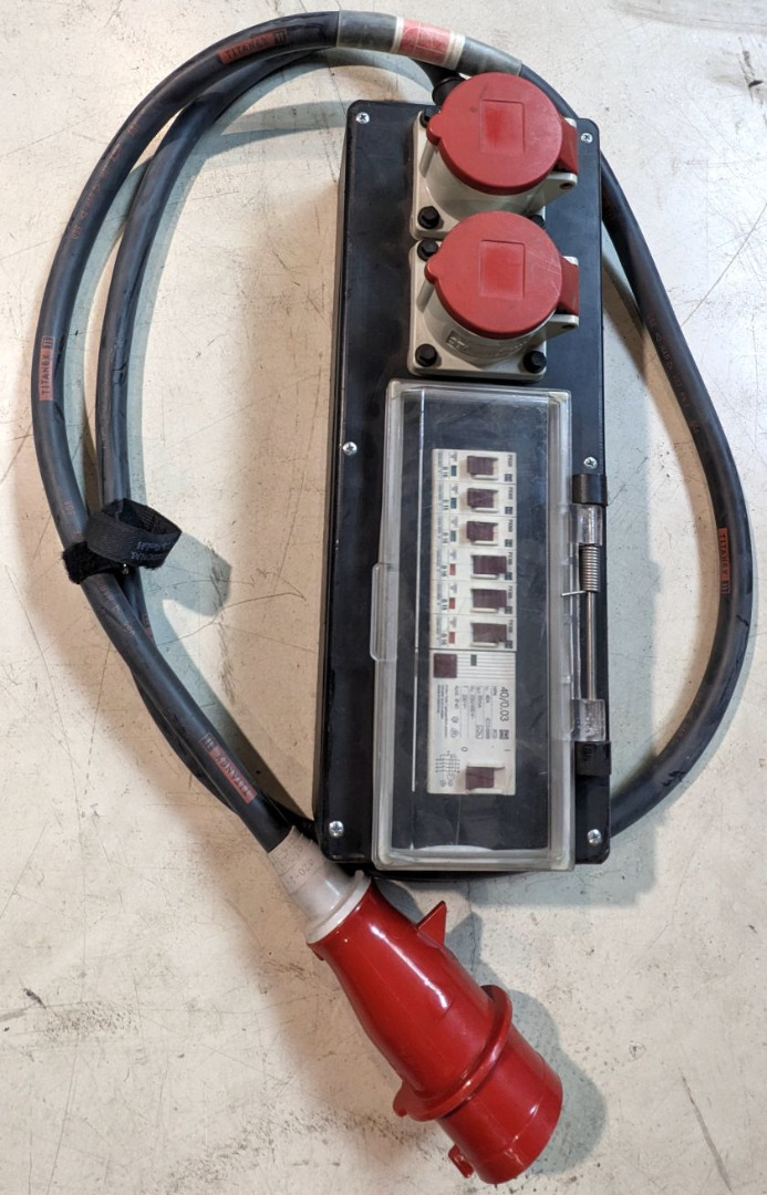 Kofferverteiler 32A > 2x 16A, 6x 16A Sich.Automat, 1x RCD 30mA, aus Gebrauchtwarenbestand.