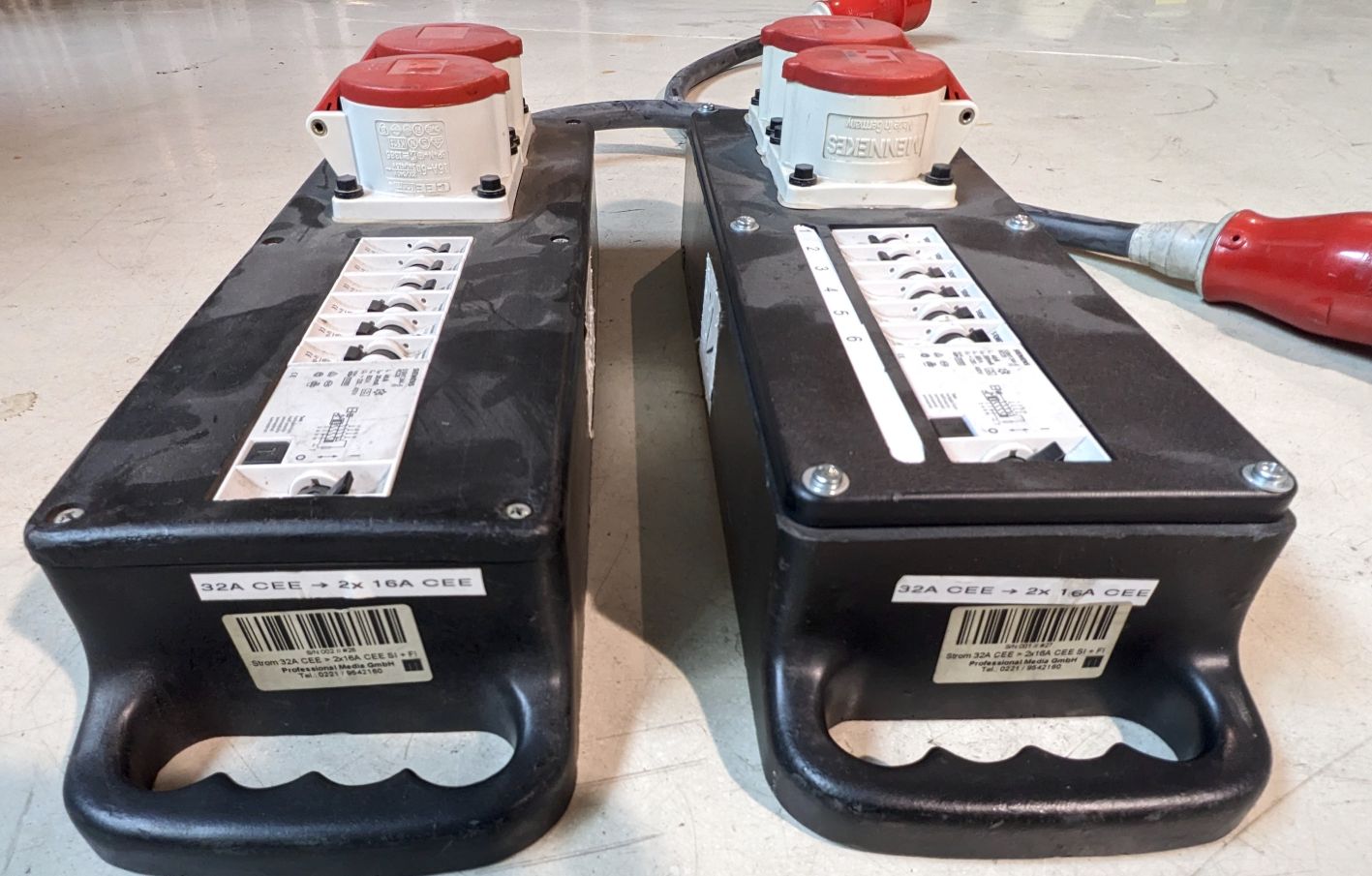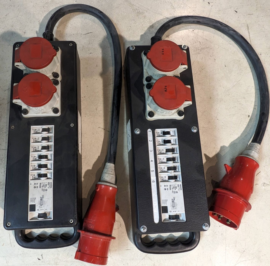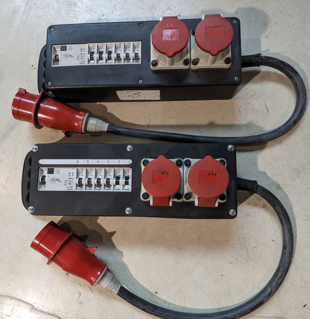 Kofferverteiler 32A > 2x 16A, 6x 16A Sich.Automat, 1x RCD, aus Gebrauchtwarenbestand.