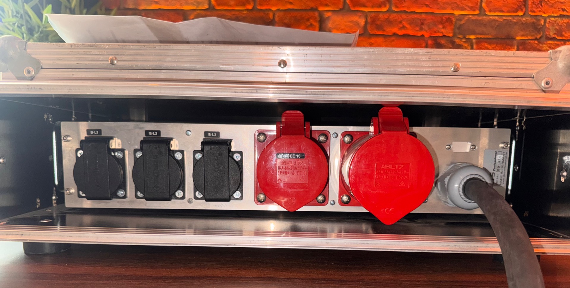 - CEE 32A Stecker auf 3 x Schuko, 1x CEE 16 A und CEE32A link