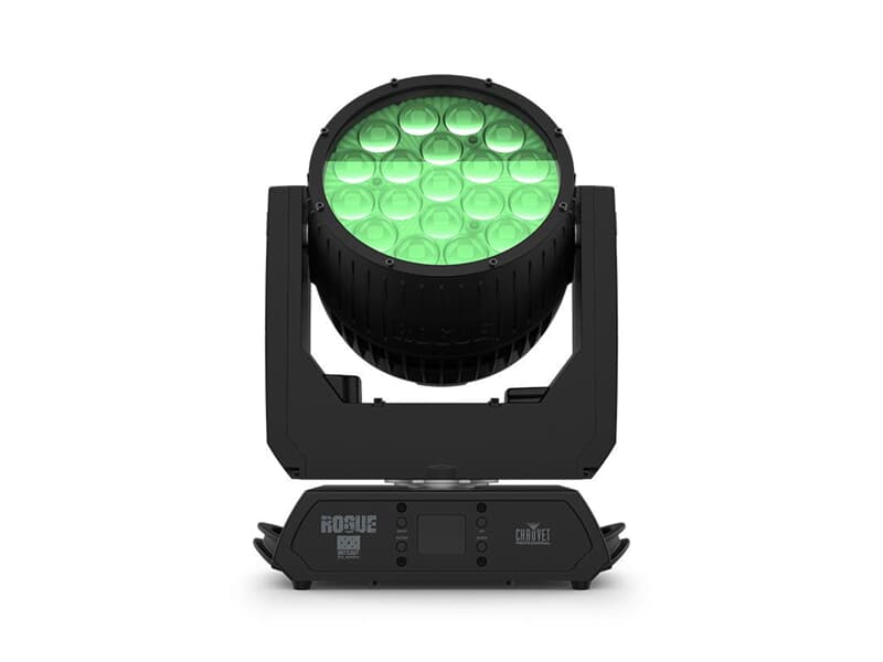 19 RGBW-Quad-LEDs à 25 W, motorischer Zoom von 8° bis 66°, 5 unabhängig steuerbare Pixelzonen für Pixel-Mapping. 16-Bit-Master-Dimmer für samtweiche Fades. Gehäuse aus Aluminium-/Magnesiumlegierung, IP65-zertifiziert für temporären Außeneinsatz.