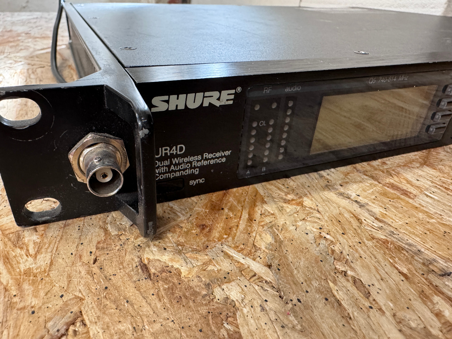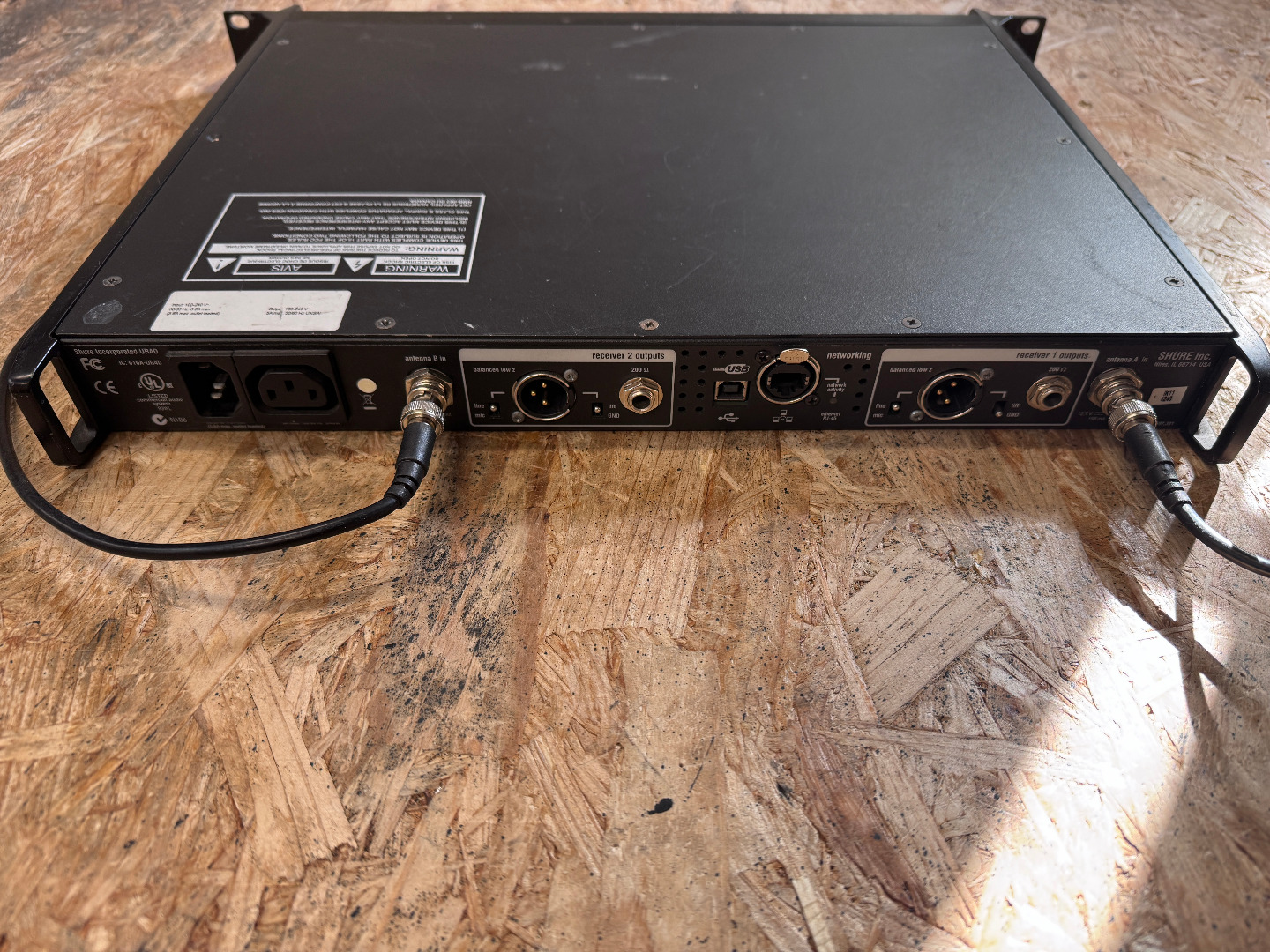 1x Shure UR4D twin receiver (Q5, 740-814 MHz)
