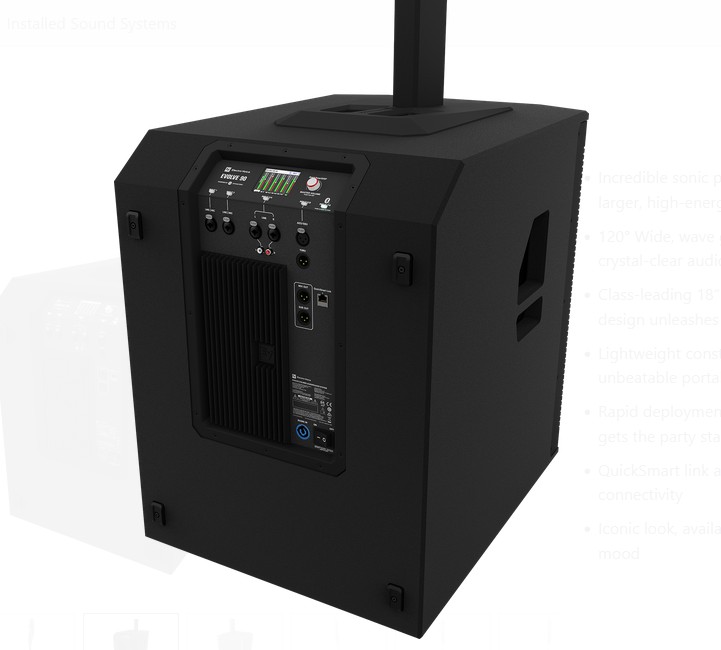 Subwoofer, Säulenlautsprecher Array und Distanzstange