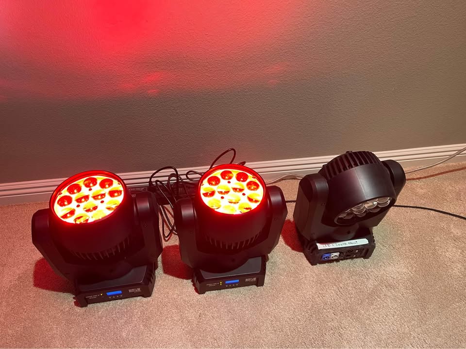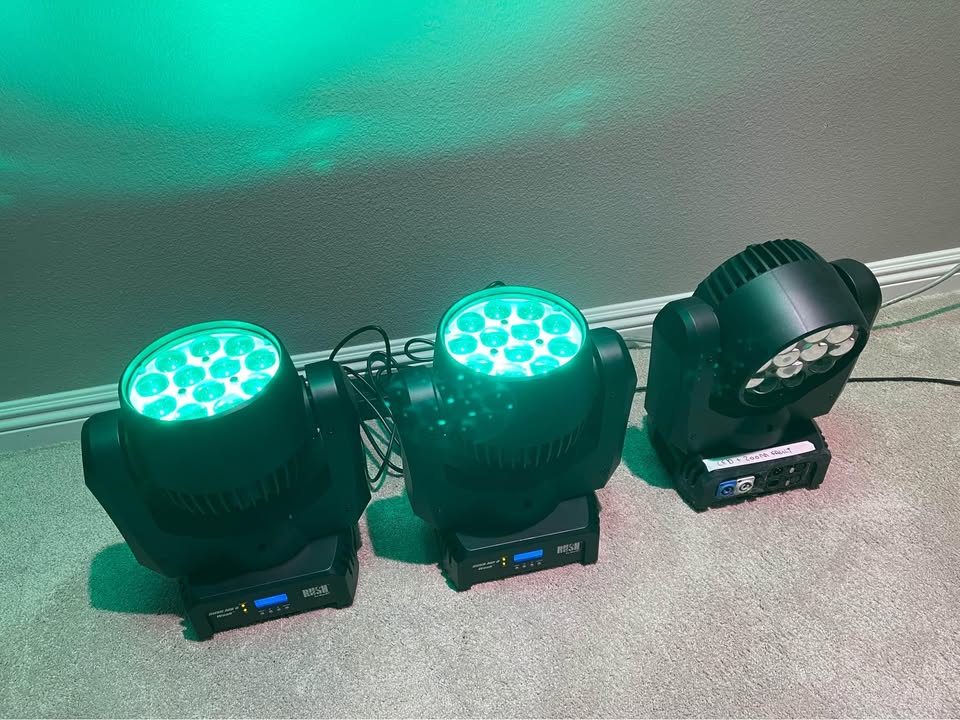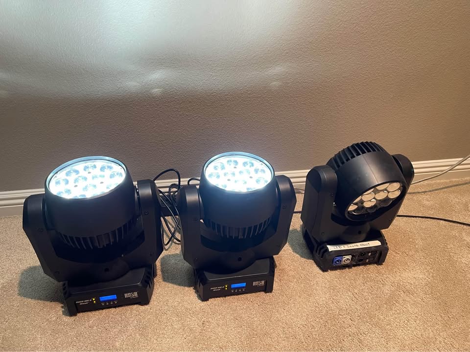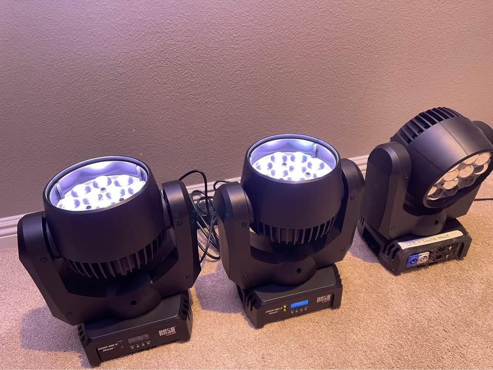 Die Moving Heads stammen aus erster Hand und wurden ausschließlich professionell eingesetzt. Sie sind technisch einwandfrei und optisch in einem sehr guten, gebrauchten Zustand. Durch die kompakte Bauweise und den motorisierten Zoom (10 bis 60 Grad) sind sie extrem vielseitig für Gala, Messe und Live-Events.