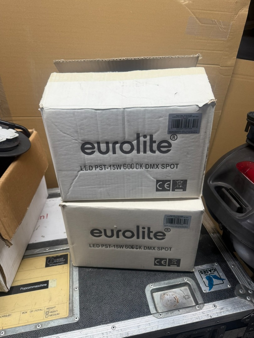 Wir verkaufen hier aus unseren Bestand 2 Eurolite LED PST-15W 6000K DMX Neu OVP Lampen sind neu nie benutzt übrig aus einer Installation