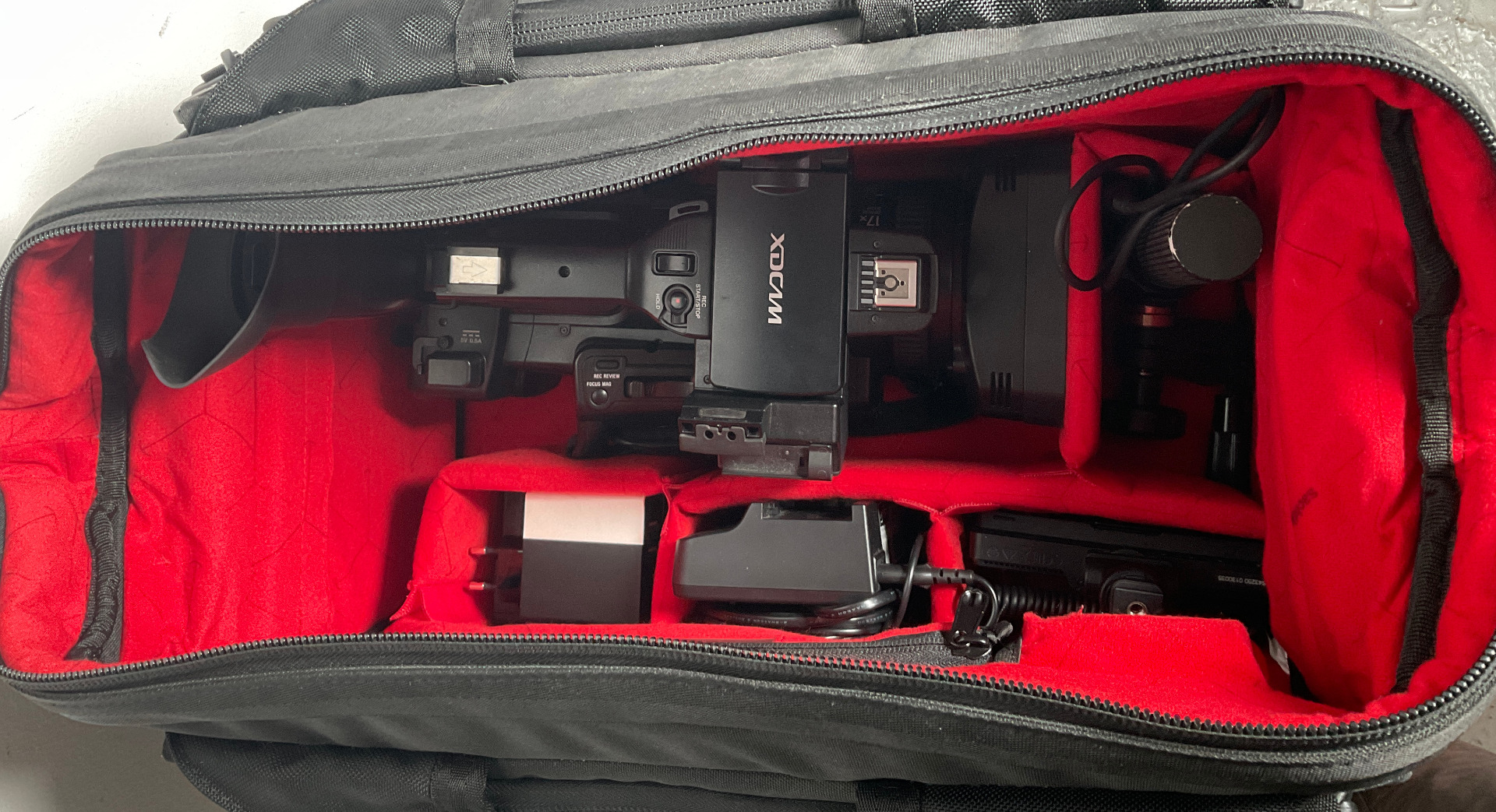 Alles fertig gepackt in einer Sachtler Transporttasche.
