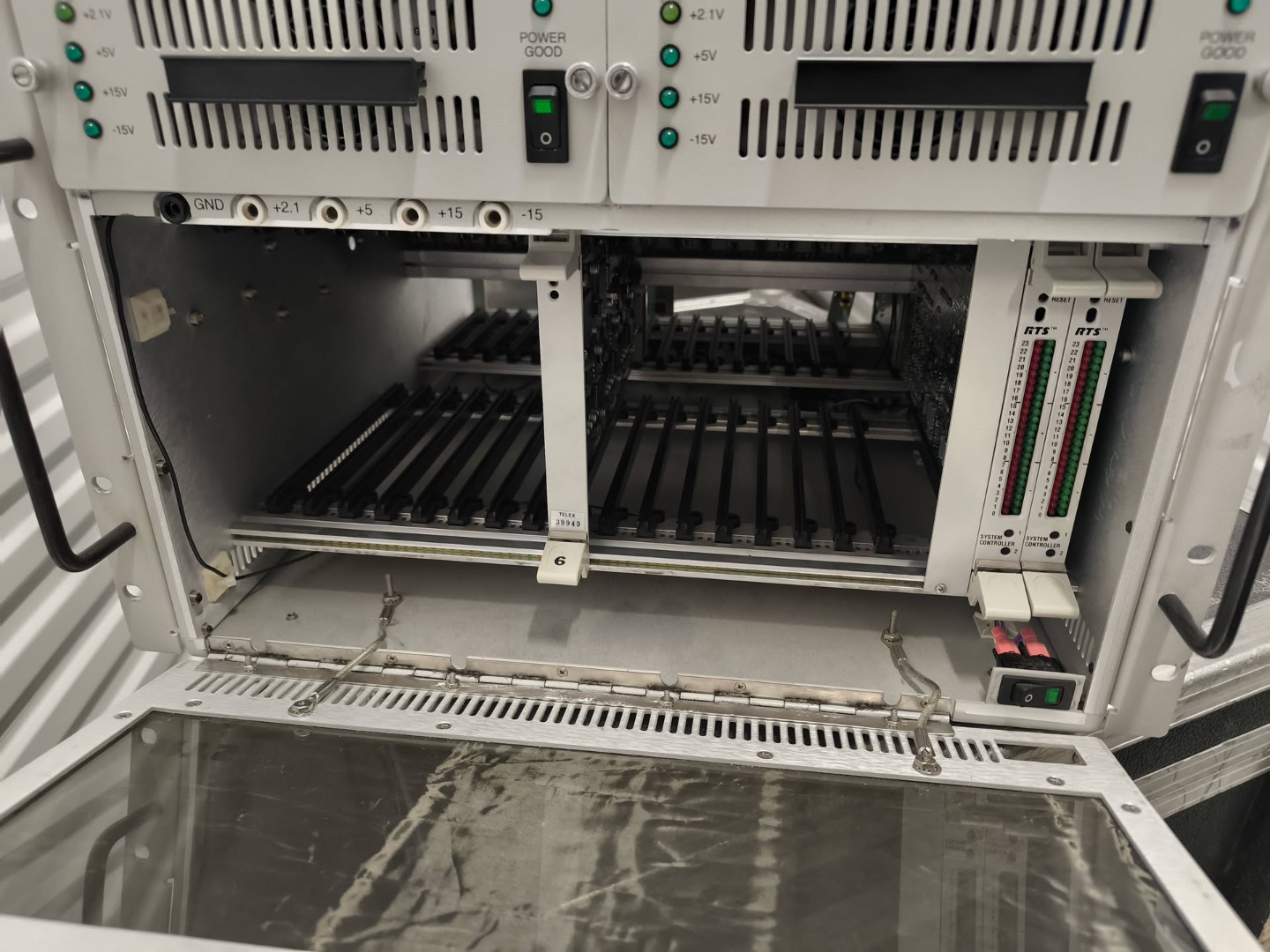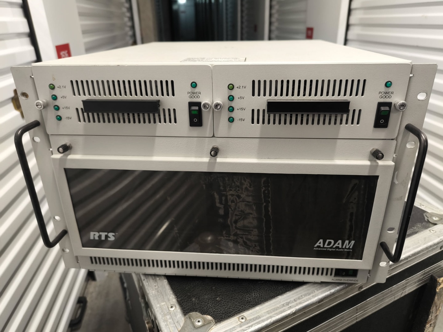 Biete hier einen RTS TELEX ADAM Intercom Frame inklusive 2x MCE Master Controller Karten und einer 8-Kanal AIO8 card mit SCSI Backcard. Netzteile sind logischerweise auch dabei. Zusätzlich beigelegt ist ein SCSI 68pin Kabel mit angelöteten Serial-Stecker. Sollte ein custom breakout werden, Projekt ist aber dazu gestorben. Zustand dem Alter entsprechend, aber komplett funktionsfähig.