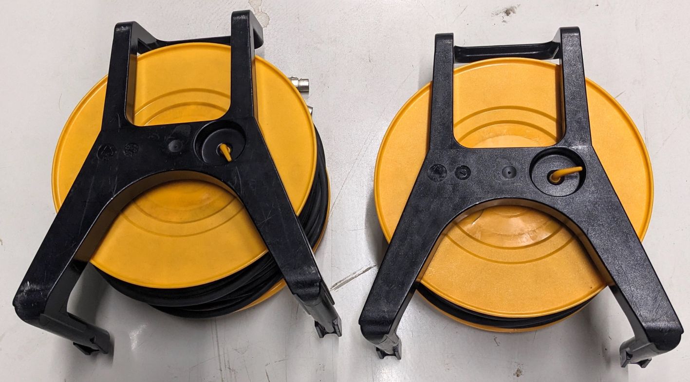 6 Kabeltrommeln (Schill) aus Gebrauchtwarenbestand. Für die Schill Produkte dürfte es noch Ersatzteile geben.