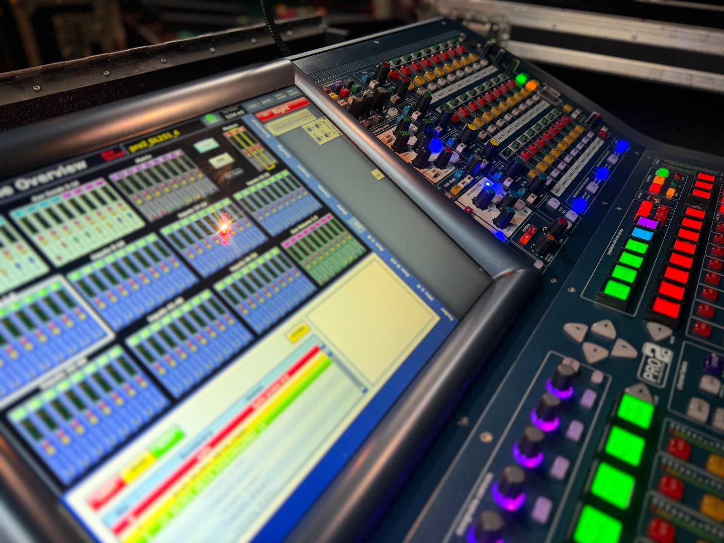 1x roadcase (gäng case) 3 teilig. inkl 1he 19" und 1he 1/2 19" ausbau unterm pult (inl ausziehbarer schublade und orginal midas tastatur)