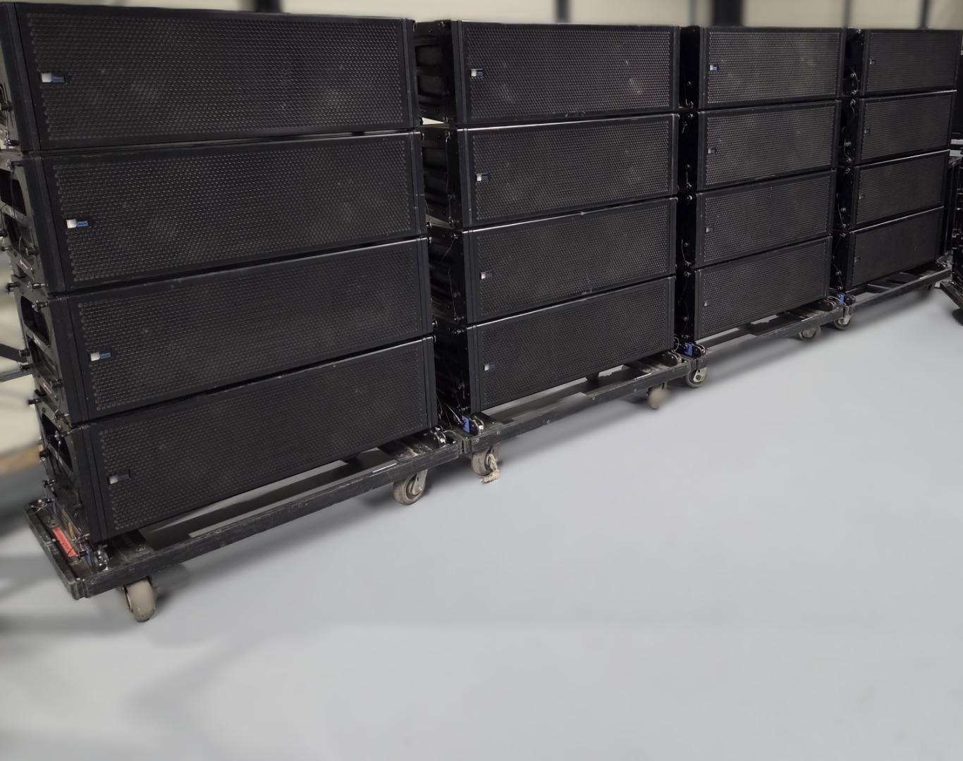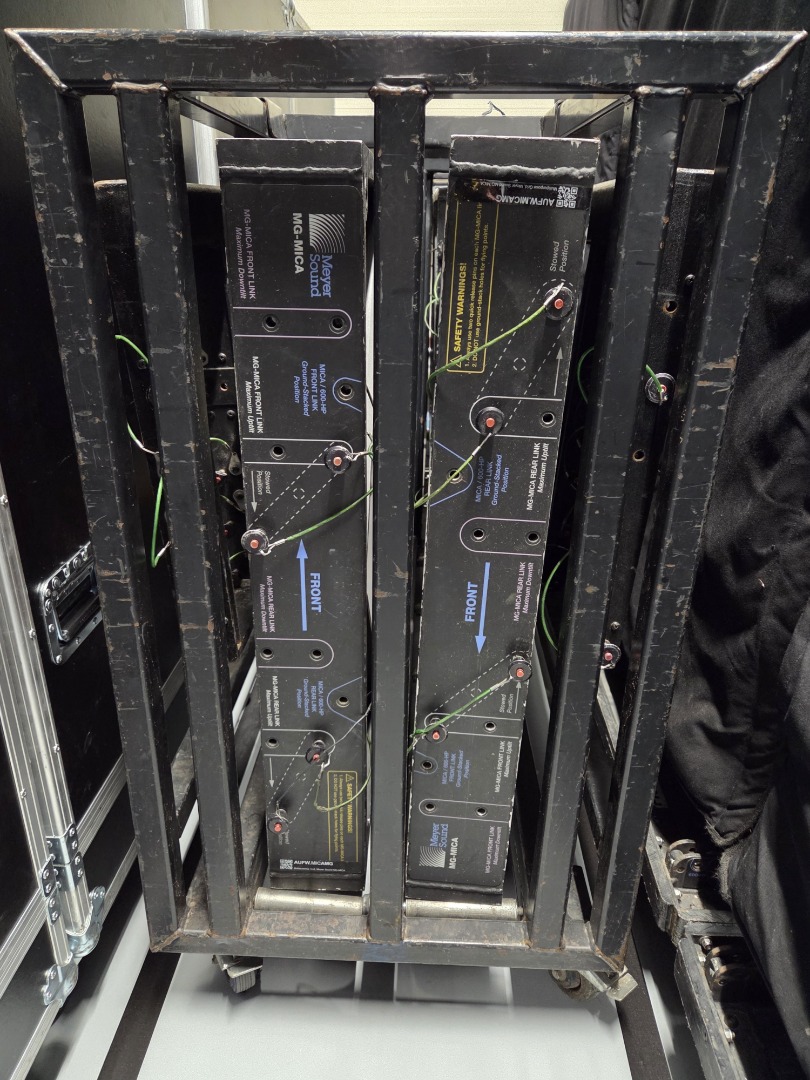 16 × Meyer Sound MICA loudspeakers, supplied with 4 × MG grids, dollies, and covers. In good used condition.