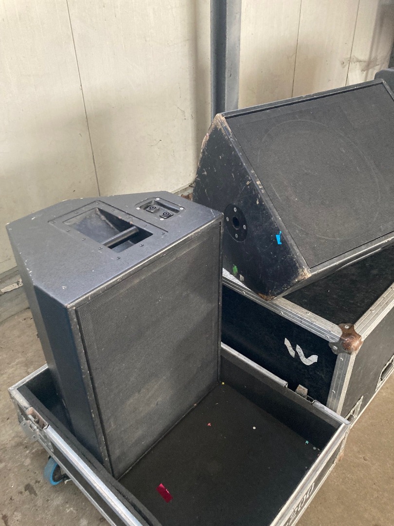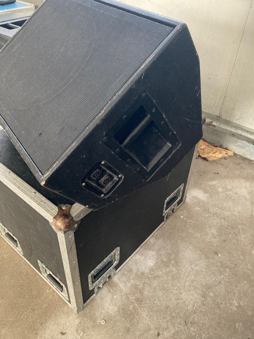 Hallo, ich biete sechs 15" Monitorlautsprecher. 15ner ist ein JBL 2225 Hochton ist ein 1" RCF, ein Wedge hat 400 Watt.