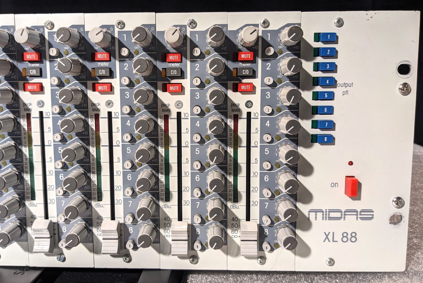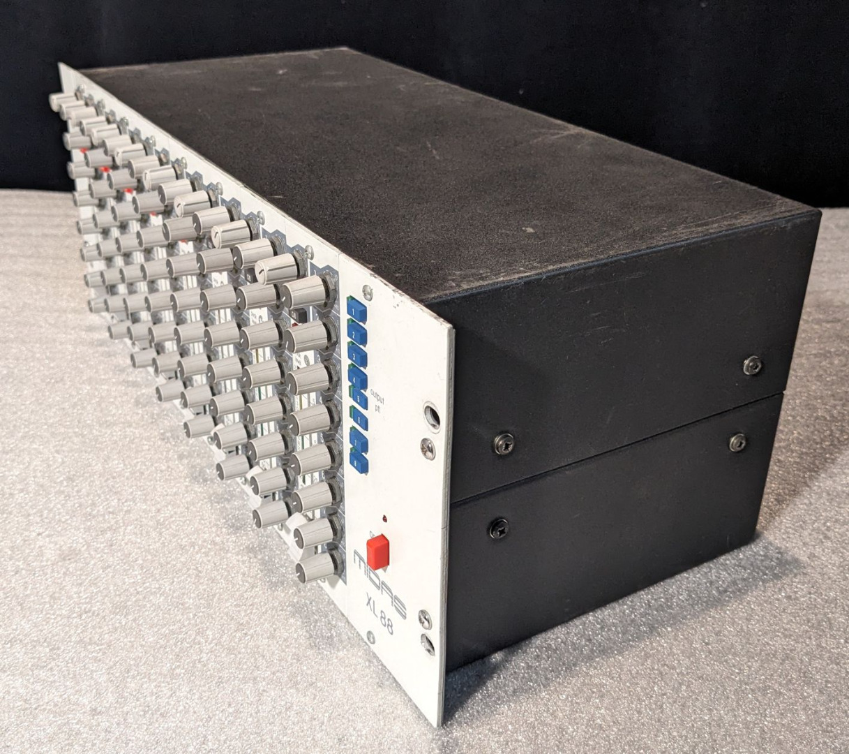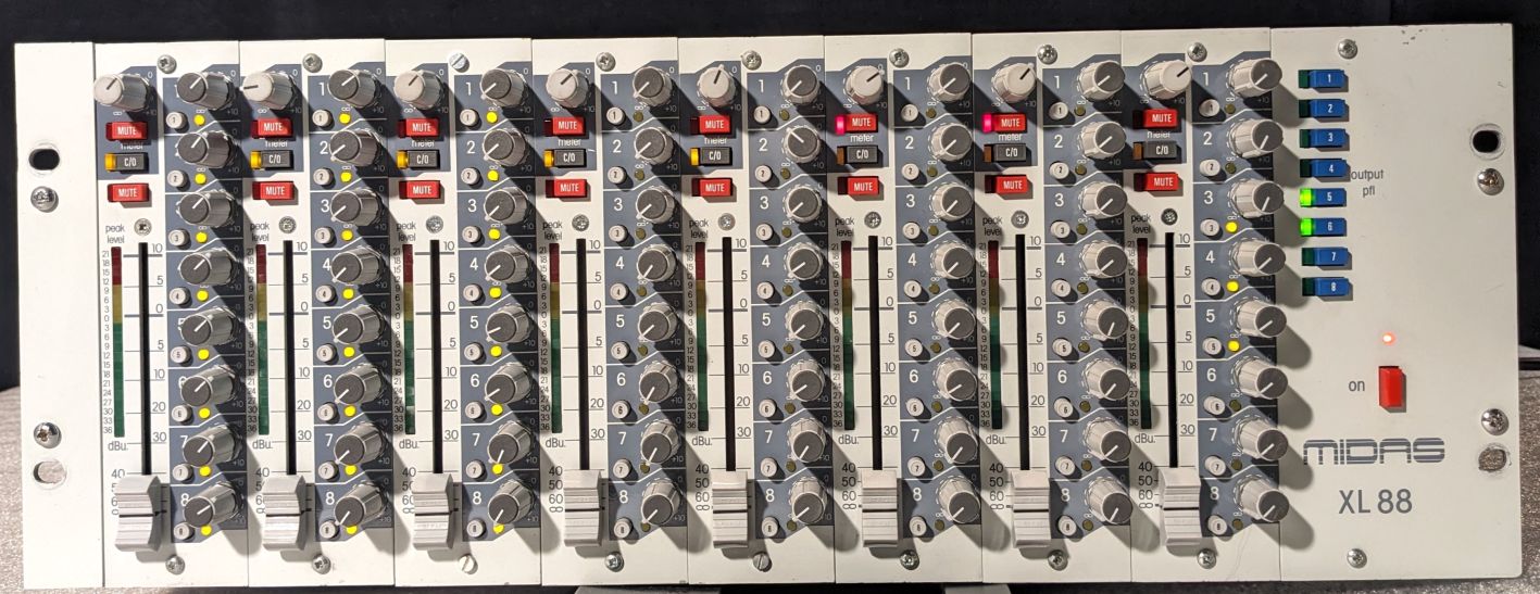 The Midas XL88 is a line level 8×8 matrix mixer which will greatly expand the capabilities of any mixing console to give eight fully independent sound balances from eight pre-mixed group outputs from the main console. The XL88 can offer this valuable extra facility to any sound installation, and is suitable for use with loudspeaker arrays, satellite links, land lines, and audio applications of all kinds.