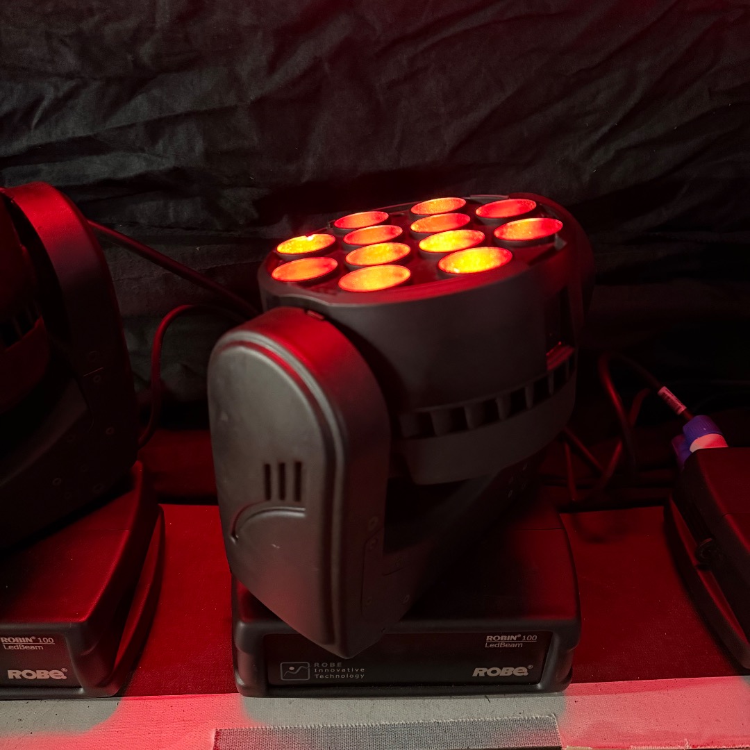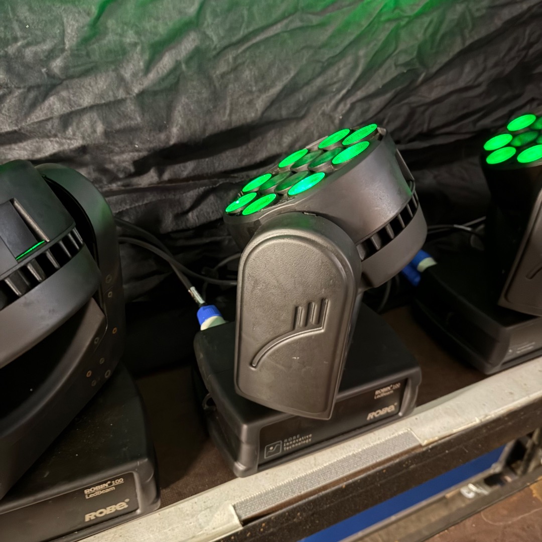 Zum Verkauf stehen 4 gebrauchte Robe Robin 100 LED Beam Movinglights aus einer Festinstallation. Die Geräte befinden sich in einem gepflegten Zustand und wurden regelmäßig gewartet. Die Betriebsstunden der Geräte liegen jeweils zwischen ca. 14.000 und 15.000 Stunden, Laufzeiten der LEDs um ein vielfaches geringer.