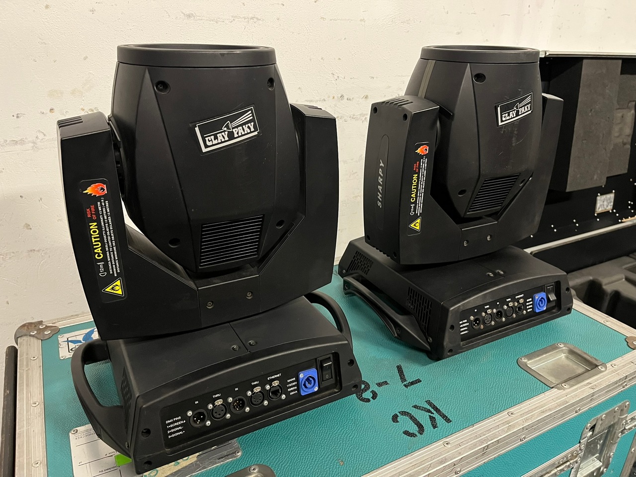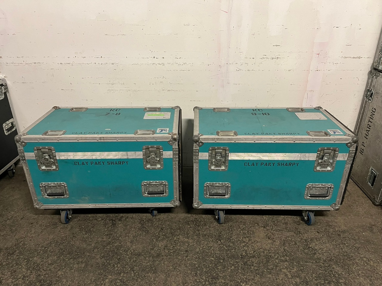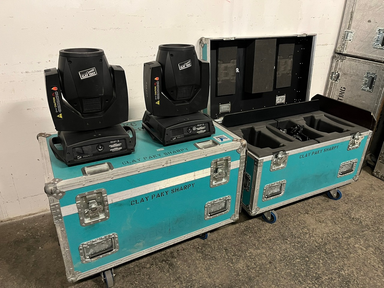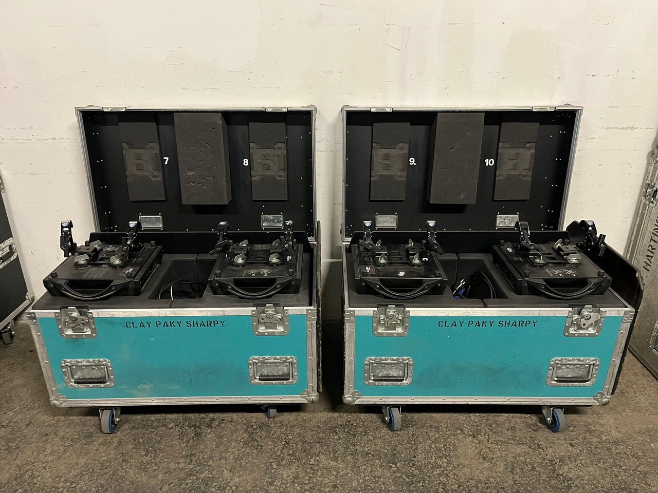 8 set (16pcs) ClayPaky Sharpy Beam moving light in original (Amptown) dual flight case with clamps and safeties.