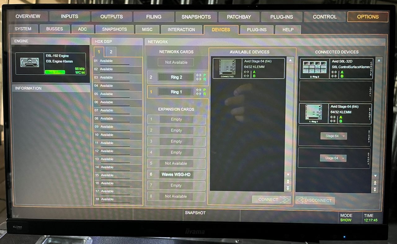 1 x Avid S6L Stage 64 (64in/32out) include 8xSRI-192, 4xSRO-192 cards