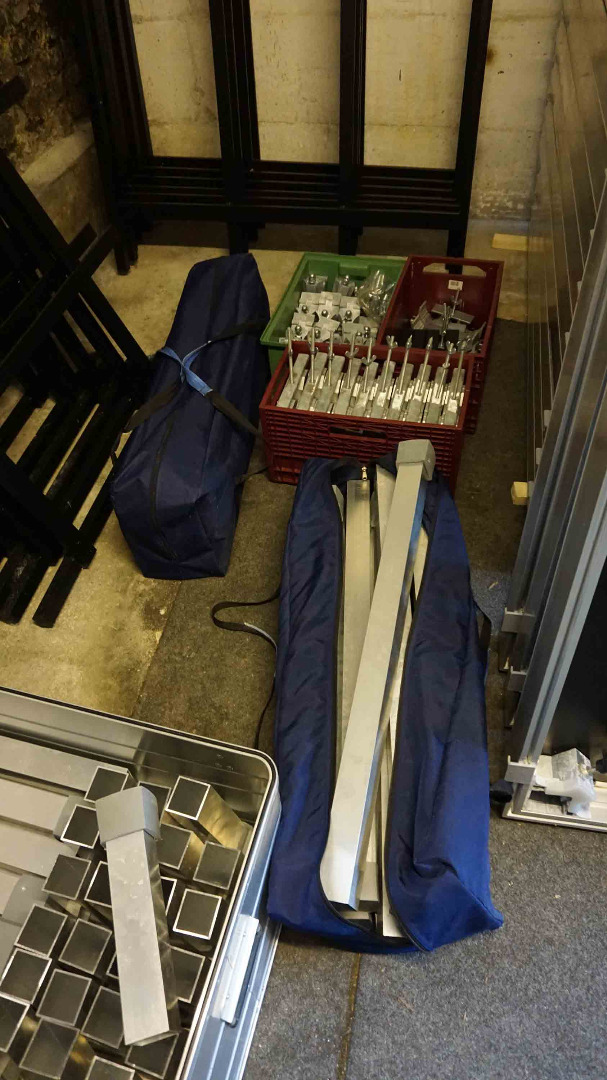 Besonderheit: Podeste und Schutzgelände passen in einem Kastenwagen (ca. 3 Ladungen)