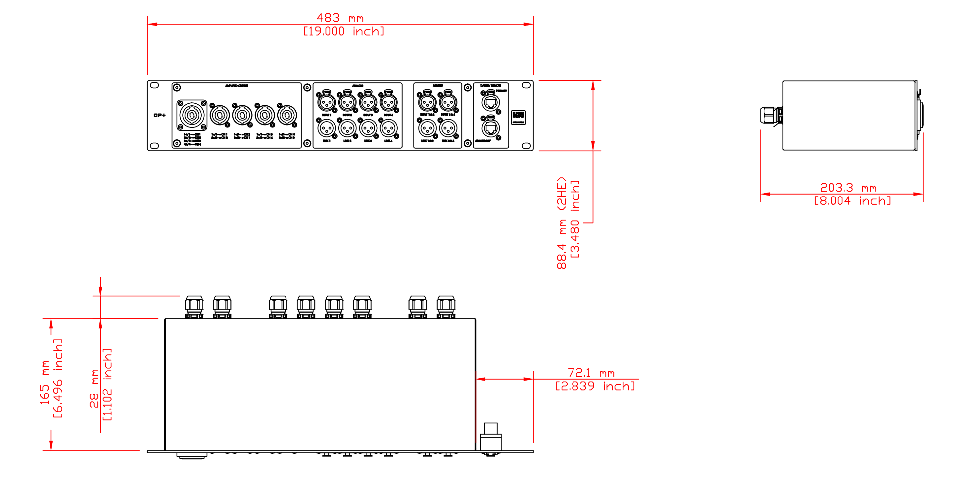 Lautsprecher und Signalzuleitungen eines Racks zur Rackfront zu leiten.